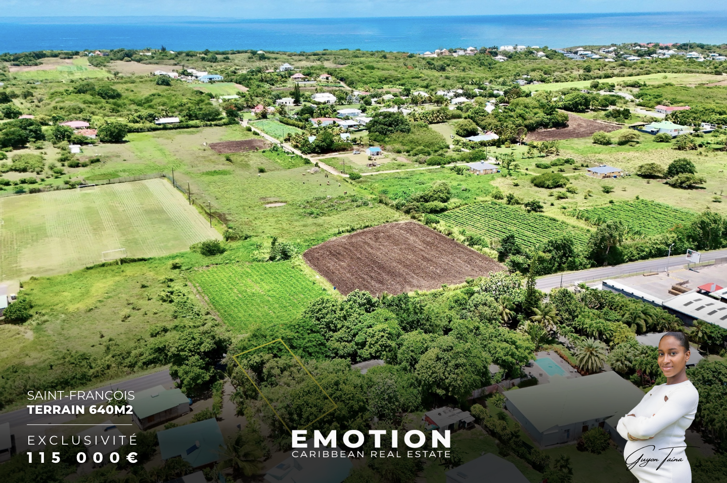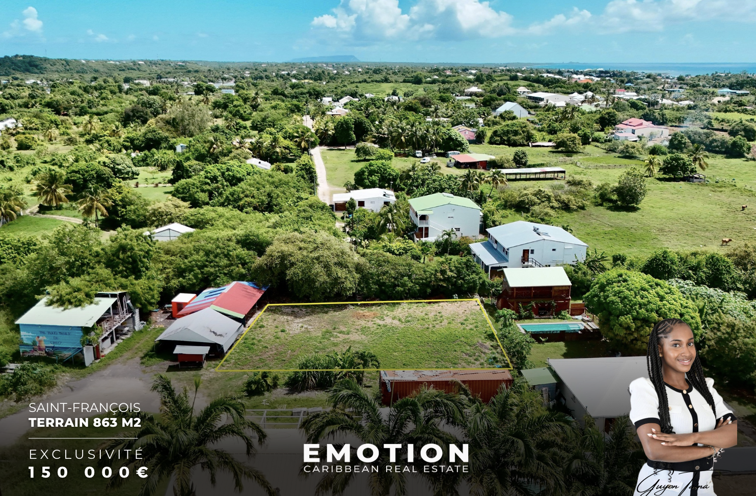 Le Cabinet EMOTION Real Estate Guadeloupevous propose enexclusivitéce nouveau terrain à la vente. Situé àSaint-François, à proximité immédiate de la...