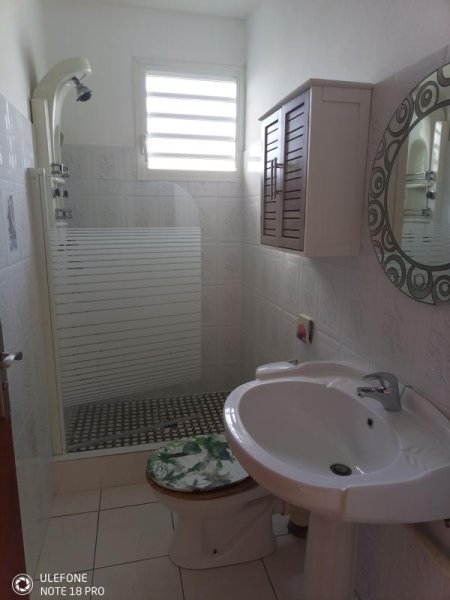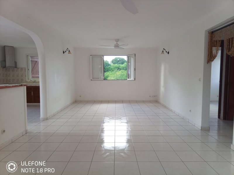 Haut de villa de type T3 non meublé, composé d'un séjour, une cuisine ouverte aménagée et équipée, deux chambres climatisées, une salle d'eau/wc et une salle de bain/wc.