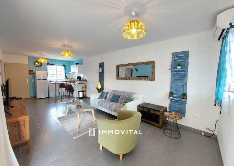 IMMOVITAL LE MOULE vous propose à la location ce magnifique T2 moderne meublé et climatisé, proche des commodités à pied et de la plage de La Baie. Il se compose d'une pièce principale climatisée avec séjour/cuisine équipée, pièce donnant vers la terrasse arrière (donc agréablement ensoleillée), une chambre climatisée avec dressing et une salle d'eau avec WC. Appartement meublé avec goût et disposant d'une place de parking réservée. Les charges d'eau et d'électricité ne sont pas comprises. Taxe d'ordures ménagères à la charge du locataire. Disponible début avril !!! Pour plus d'informations ou organiser une visite, contactez IMMOVITAL LE MOULE 0590 23 10 10. Nous sommes également présents à Jarry 0590 48 10 10 et Basse-Terre 0590 88 10 10.