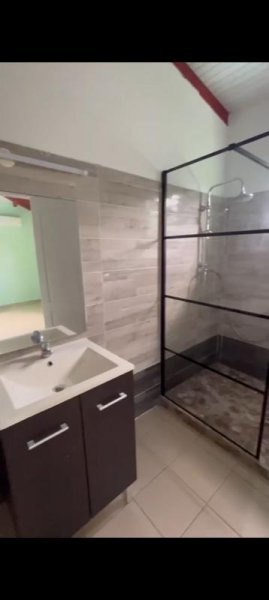 Haut de villa indépendant type T5, composé d'un séjour avec une cuisine aménagée ouverte, une buanderie attenante, trois chambres dont deux climatisées : une suite parentale avec sa salle d'eau, deux chambres, une salle d'eau/wc et à l'étage une mezzanine pouvant servir de chambre supplémentaire ou de bureau. Une terrasse en L couverte avec vue verdoyante. Une citerne tampon.