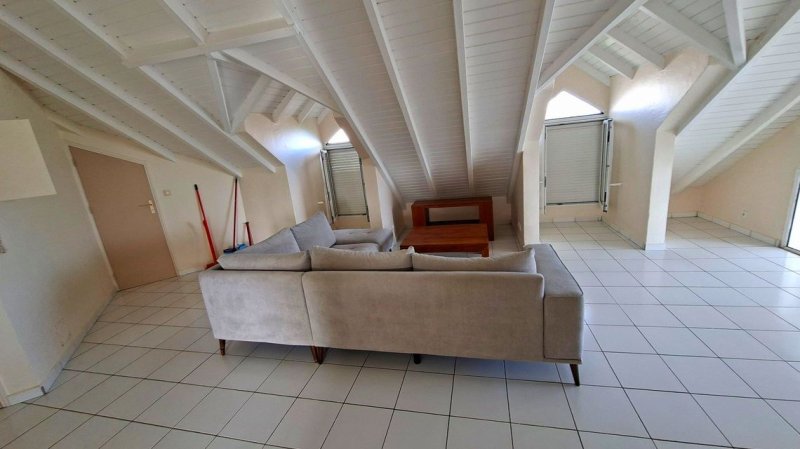 Sur le territoire de la commune de Gosier, section Dunoyer, un appartement non-meublé (quelques meubles mis à disposition) de type T2 de 65,14m² de superficie habitable, au 2ème étage, comprenant un séjour, une cuisine ouverte sur le séjour équipée et aménagée de placards, un WC indépendant, une chambre climatisée, une salle d'eau, un coin dressing, une loggia de 12,50m².