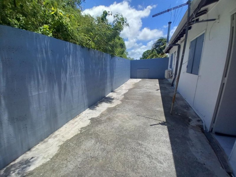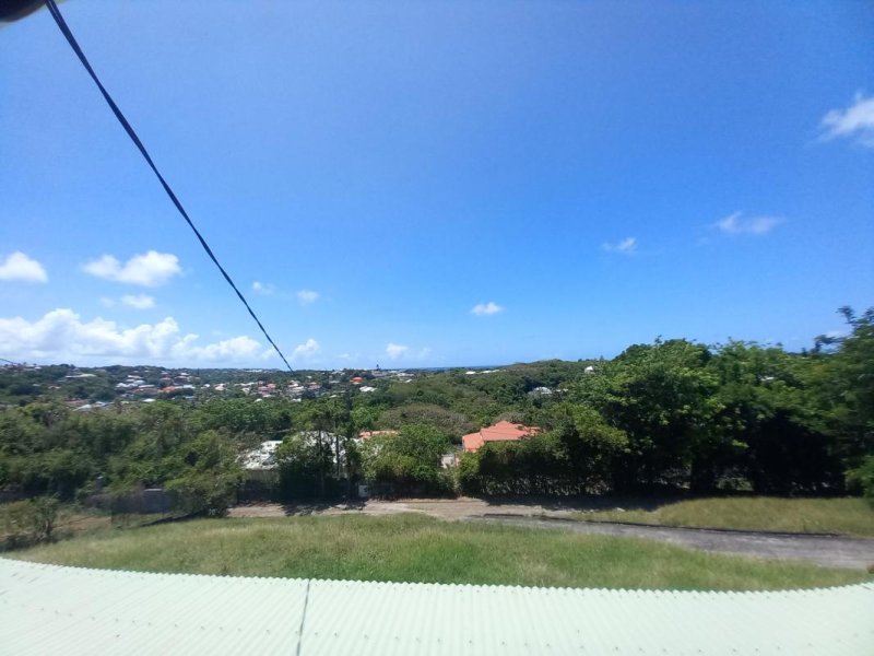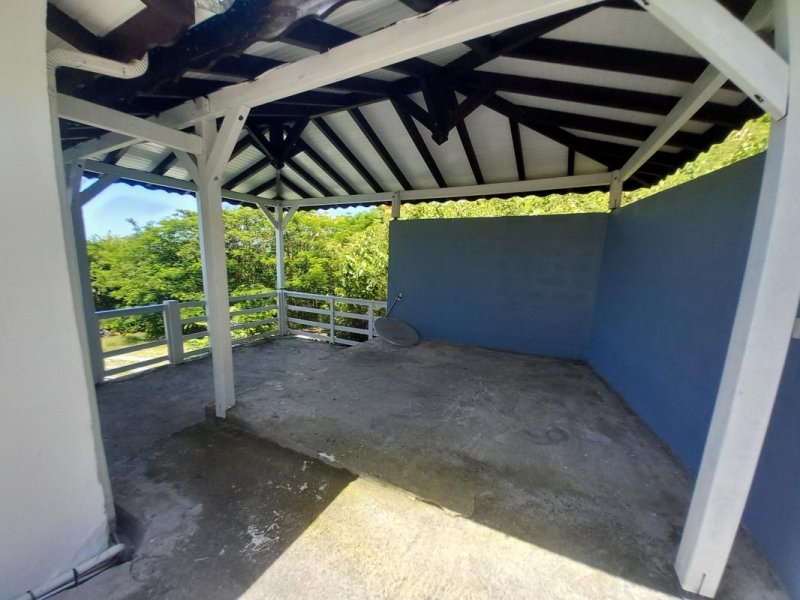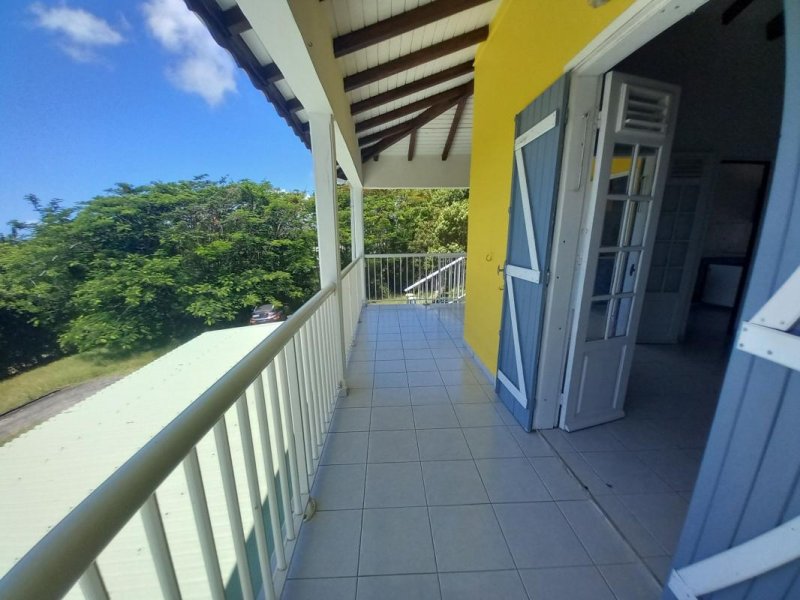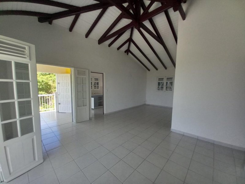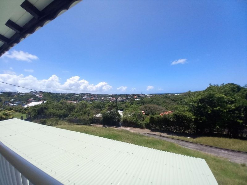 Appartement en haut de villa non meublé type T3, composé d'un séjour, une cuisine aménagée et équipée, deux chambres climatisées dont une suite parentale avec sa salle d'eau/wc et avec accès terrasse, une salle de bain avec wc, une terrasse couverte en L à l'avant avec vue mer, une cour et un carbet à l'arrière.