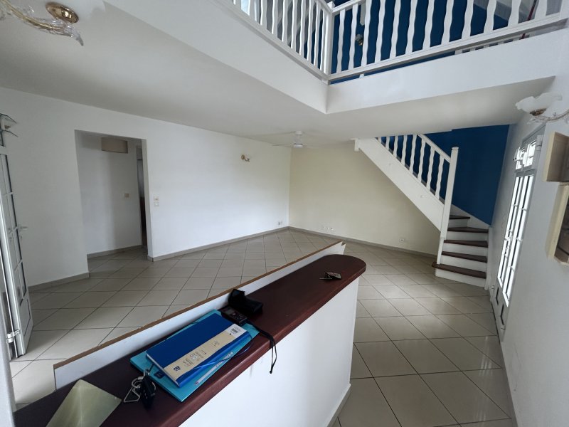 Très joli haut de villa comprenant : 2 chambres ( climatisées et equipées d'un brasseur d'air ) , 1 salle d'eau , 2 WC , une grande mezzanine comportant une salle d'eau avec WC , une cuisine à l'americaine et une spacieuse piece à vivre ( sejour/salle a manger ) Dans un quartier calme au gosier. Disponible Immédiatement. Eau et Edf à la charge du locataire - Dépôt de garantie : 950 euros - HA : 780.67 euros TTC