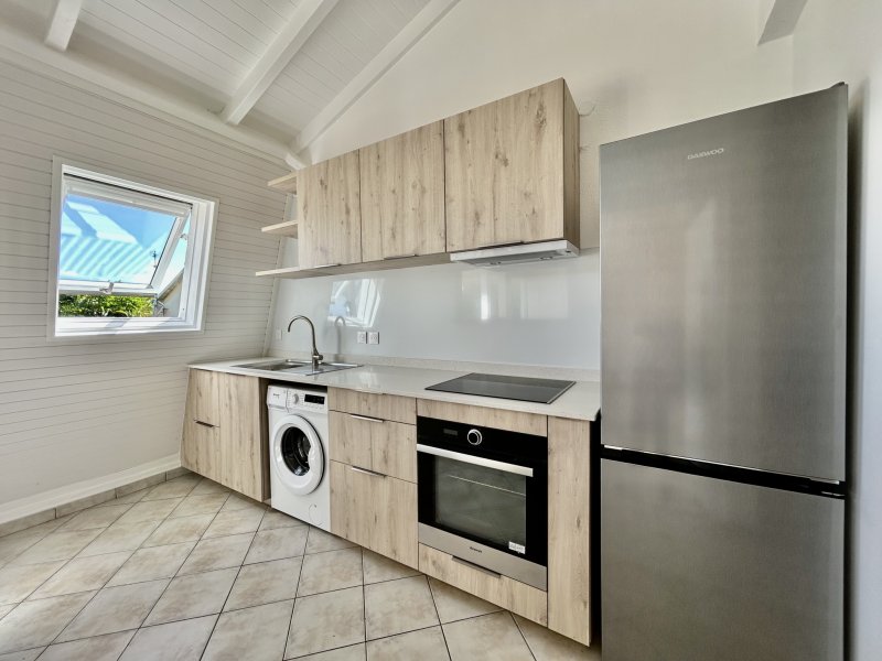 Venez découvrir ce superbe appartement T3, entièrement rénové et décoré avec goût, situé dans le secteur très recherché de Moudong Sud, au 1er étage d'une résidence calme et sécurisée avec piscine. Il se compose d'un séjour lumineux offrant une belle hauteur sous plafond, d'une cuisine neuve, aménagée et entièrement équipée, ouvrant sur une agréable terrasse fermée par un volet roulant. L'appartement comprend également deux chambres climatisées, une salle d'eau moderne avec WC, et bénéficie de prestations de qualité dans un environnement soigné. Loyer : 1 380 EUR par mois (charges eau et électricité sont à la charge du locataire) Contact : Sarah DERAINE 0690 31 31 97