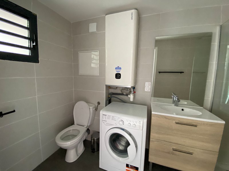 Entrée sur séjour, dégagement, 1 chambre climatisée, 1 salle d'eau avec wc (sans la machine à laver) , cuisine aménagée avec plaque de cuisson.