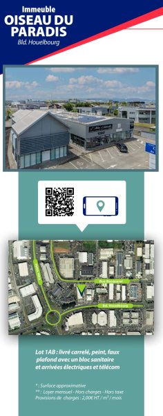 Vanessa ESTEBE vous propose à la location ce local à usage de Bureau ou commerce offrant une surface de 112 m2 en rez de chaussée, idéalement rue Henri Becquerel et le boulevard de Houelbourg. Ce local est livré carrelé faux plafond, avec bloc sanitaire. Loyer mensuel 2128 HT euros Provision pour charges mensuel HT 224EUR Caution 4256 EUR HT soit 2 mois de loyer hors charges. Honoraires charge locataire HT : 3830EUR Bail notarié frais partagés avec le propriétaire. 'Les informations sur les risques auxquels ce bien est exposé sont disponibles sur le site Géorisques http://www.georisques.gouv.fr' Au plaisir d'échanger sur votre projet immobilier ! Pour visiter et vous accompagner dans votre projet contactez l'agence IMMO 971 Vanessa ESTEBE au 0690 86 31 32 0590 90 90 86 mail : v.estebe@immo971.com Mandat réf 9101 1