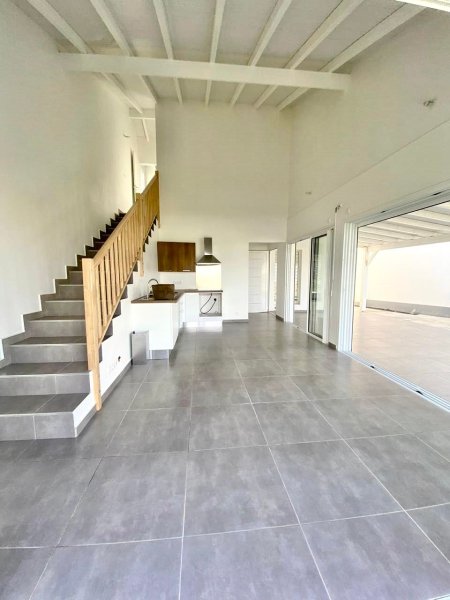 A Colin, secteur utra privilégié depuis l'aménagement de la zone Carrefour Market, tous commerces, tous services à 10 minutes de Jarry, une villa de type F4 sur un terrain clotûré, comprenant au RDC : une cuisine américaine et aménagée, ouverte sur le séjour, deux chambres climatisées avec placards, une salle d'eau avec WC. A l'étage se trouve une chambre climatisée, un dressing et une salle d'eau avec WC et un coin buanderie.Terrasse de 15 m2. Sur un terrain de 400 m2. Portail électrique. Chauffe eau solaire. L'eau et l'électricité sont à la charge du locataire. Disponible. Pour plus de renseignements, contacter Christelle BORDES au 0690 92 06 85.