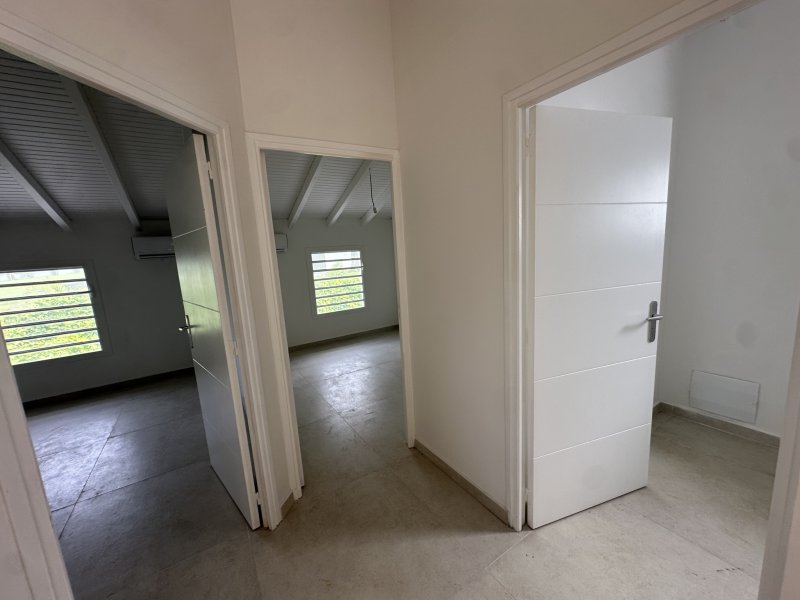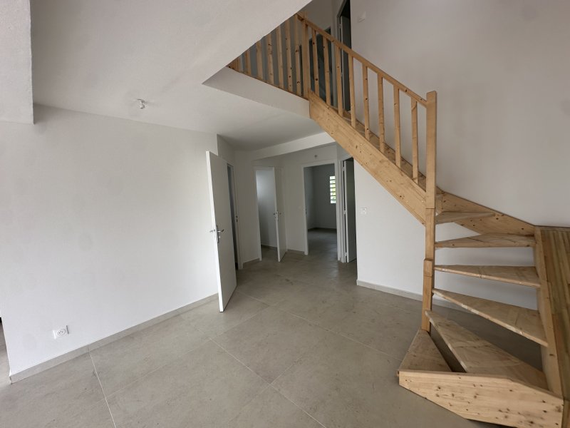 À louer, villa moderne offrant tout le confort recherché. Cette villa dispose d'un bel espace séjour/cuisine d'environ 30 m2, lumineux grâce à de grandes baies vitrées ouvrant sur une terrasse spacieuse. La cuisine semi-équipée avec cellier complète parfaitement cet espace de vie convivial. Vous trouverez 4 chambres dont une en rez-de-chaussée. Toutes les chambres sont climatisées pour un confort optimale. La villa comprend également deux salles d'eau modernes avec double vasques, douche à l'italienne et WC, une à chaque niveau. Conçues pour répondre aux besoins actuels, cette villa est équipée de volets roulants électriques dans le séjour, d'un chauffe-eau solaire et est éligible à la fibre optique. Un portail commun sécurise l'accès, avec trois places de parking privatives.