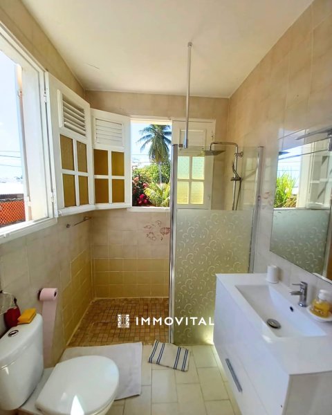 IMMOVITAL vous propose à la location cette charmante villa T4 meublée, située dans un environnement calme avec une magnifique vue mer. La villa comprend une cuisine aménagée et équipée avec une plaque de cuisson électrique et gaz, un séjour accueillant, une salle à manger conviviale, deux chambres climatisées, une salle d'eau indépendante, un WC séparé, ainsi qu'une chambre parentale climatisée, équipée d'un brasseur d'air et d'une salle d'eau attenante. À l'extérieur, vous profiterez de deux terrasses, l'une à l'avant et l'autre à l'arrière, d'une piscine privée pour vos moments de détente, d'un espace de stationnement et d'un garage aménagé en buanderie. Une citerne d'eau est également présente pour alimenter le logement en toute autonomie. L''étage de la maison n'est pas inclus dans la location. Eau, électricité, internet, entretien du jardin et de la pisicine à la charge du locataire. Disponible à partir du 8 septembre 2025 ! Contactez IMMOVITAL LE MOULE 0590 23 10 10 pour organiser une visite ! Nous sommes également présents à Basse-Terre 0590 88 10 10 et Jarry 0590 48 10 10.