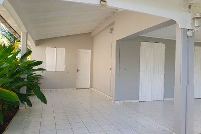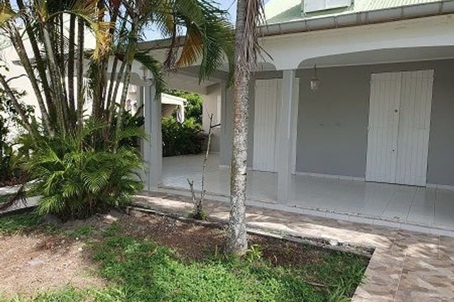 Sur le territoire de la commune de Baie-Mahault, section Belcourt, sur un terrain clôturé de 464 m²avec portail, une villa de type T5 de 123,70m², comprenant une cuisine de 11,10m² avec bar ouvert sur le séjour, aménagée de placards et plaque de cuisson, un séjour de 37,18m², un dégagement, un WC indépendant, trois chambres climatisées de 9,11, 10,60 et 8,41m², une salle d'eau. A l'étage une mezzanine, une chambre climatisée de 12,27m² avec placards, un espace bureau de 21,59m² une salle d'eau avec WC. Une terrasse de 25m², un grand abri ouvert à l'arrière.