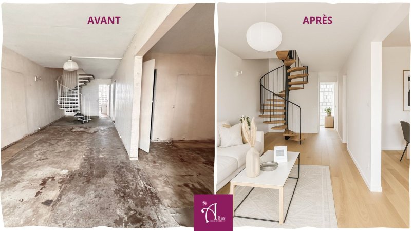 Appartement T5 en duplex à rénover Tour Anquetil 4, Les Abymes Situé au 11e étage de la Tour Anquetil 4, cet appartement T5 en duplex de 98 m2 offre un beau potentiel pour un projet de rénovation. Ses volumes généreux et sa configuration sur deux niveaux laissent entrevoir de nombreuses possibilités d'aménagement, idéales pour un investisseur ou un projet locatif étudiant, à proximité du secteur recherché de Baimbridge. L'entrée se fait par l'étage supérieur, où un couloir de desserte mène à deux chambres lumineuses et à une salle d'eau. Au rez-de-chaussée, l'escalier ouvre sur un séjour/salon convivial, prolongé par une cuisine fermée. Un couloir dessert ensuite une troisième chambre de même superficie que celles de l'étage, une seconde salle d'eau, un WC indépendant, un débarras, ainsi qu'un espace salle à manger pouvant facilement être transformé en quatrième chambre ou en bureau. L'appartement dispose également d'une terrasse fermée par des volets anti-cyclone, offrant un espace supplémentaire sécurisé. Proposé au prix de 160 000 EUR (honoraires inclus), ce bien représente une opportunité rare pour les investisseurs, les primo-accédants souhaitant personnaliser leur logement, ou encore les familles recherchant un grand espace à rénover selon leurs goûts. Grâce à sa proximité avec les établissements scolaires, les transports et les zones d'activité de Baimbridge, il conviendra aussi parfaitement à un projet de colocation étudiante ou à un marché locatif à fort rendement. Cet appartement à fort potentiel n'attend plus que votre projet pour reprendre vie. NB : Les images d'aménagement 'après travaux' sont présentées à titre d'exemple. Elles permettent d'imaginer le potentiel du bien après rénovation, mais ne constituent pas un engagement de résultat ni une représentation contractuelle.