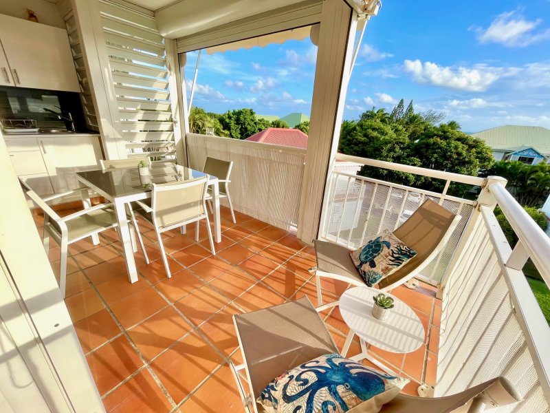 ANSE DES ROCHERS VUE MER : 1/4 de villa étage de 34 m2 (terrasse comprise) meublé, avec accès plage, piscine et tennis. Résidence sécurisée avec parking, gardien et restaurant. Emplacement proche plage et à l'abri des regards. Vue MER ET JARDIN. Composé d'une terrasse fermée par volets roulants électriques avec grande cuisine équipée, une chambre cozy climatisée avec placard, une jolie salle d'eau avec WC séparé et lave-linge. Raccordé à une citerne et internet fibre de qualité. Pour plus d'informations contacter Laurence CAILLET par WHATSAPP et SMS au +590 690 002 312 ou par SMS au 0690 35 97 18 et par mail : laurence@immo971.com et/ou cailletlo971@gmail.com en laissant vos coordonnées et l'objet de votre appel.