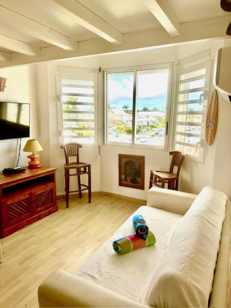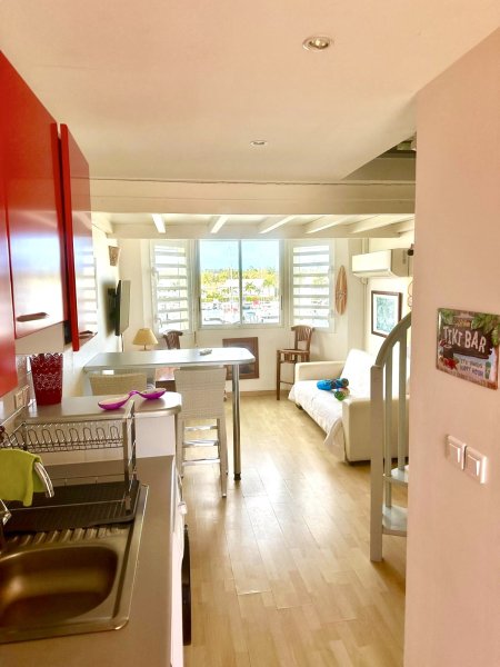 LA MARINA : Duplex d'env. 33m2 toutes surfaces comprises dont la double mezzanine, situé au coeur de la marina avec une vue sur les bateaux, proche de la plage, des commerces, médecin, base nautique, port, golf, etc... Composé d'une entrée avec belle cuisine équipée, 1 salle d'eau/WC, 1 salon lumineux et ventilé, 1 chambre en mezzanine avec possiblité d'ajouter un second couchage ou un bureau. Appartement climatisé, rénové, équipé de volets roulants. Pour plus d'informations contacter Laurence CAILLET par WHATSAPP et SMS au +590 690 002 312 ou par SMS au 0690 35 97 18 et par mail : laurence@immo971.com et/ou cailletlo971@gmail.com en laissant vos coordonnées et l'objet de votre appel.