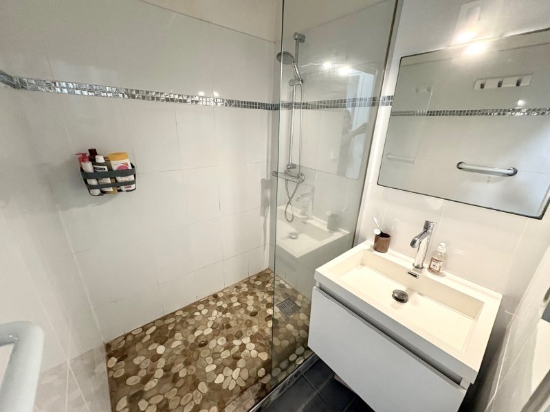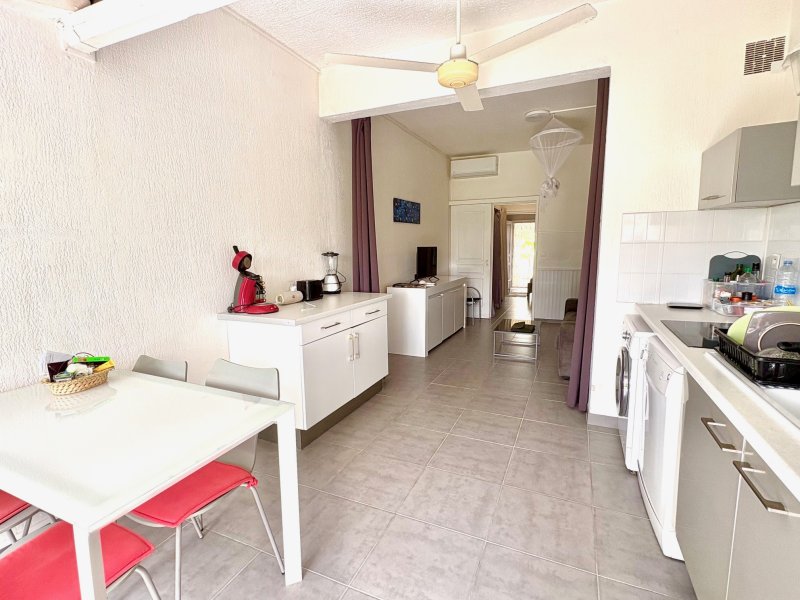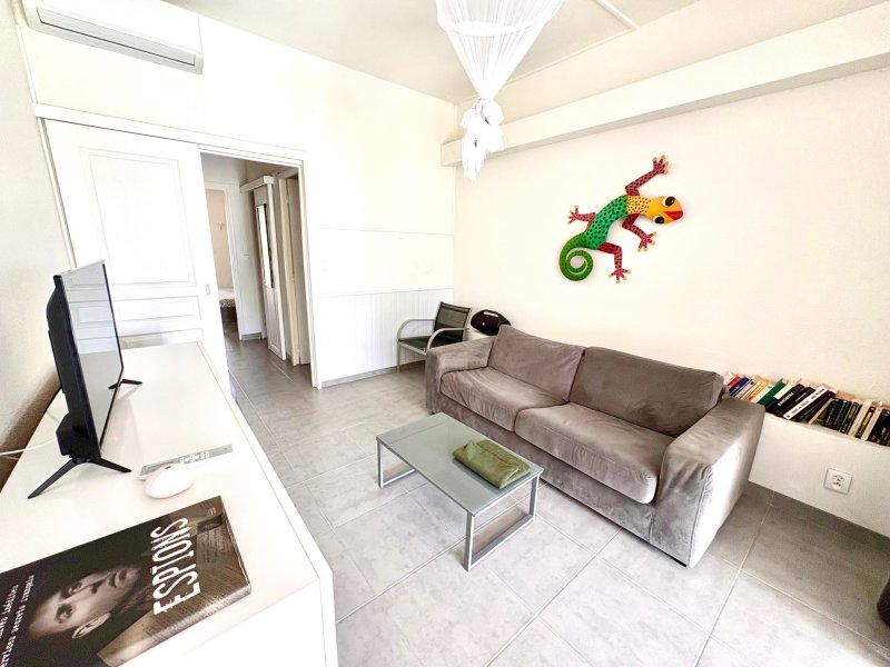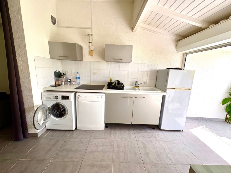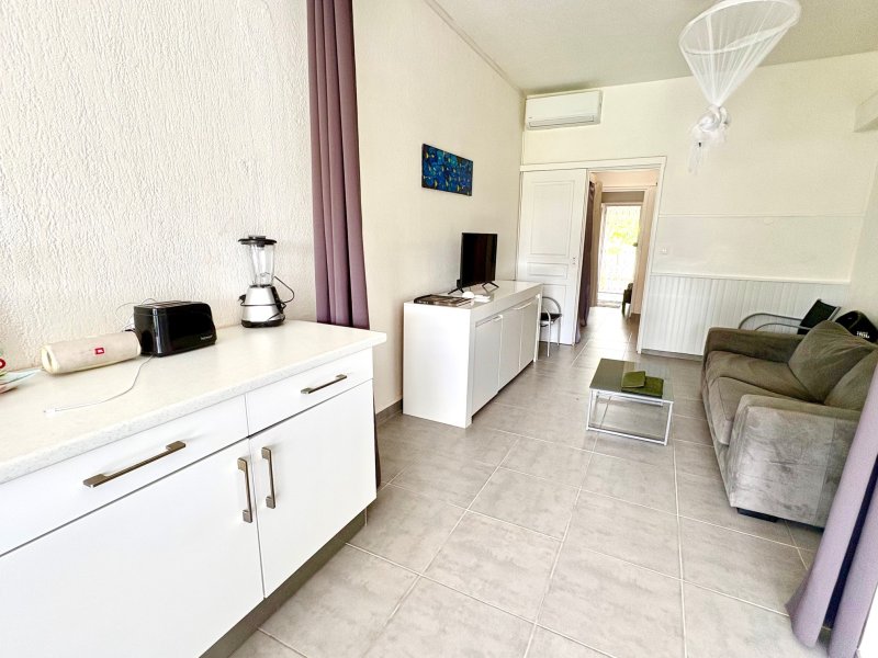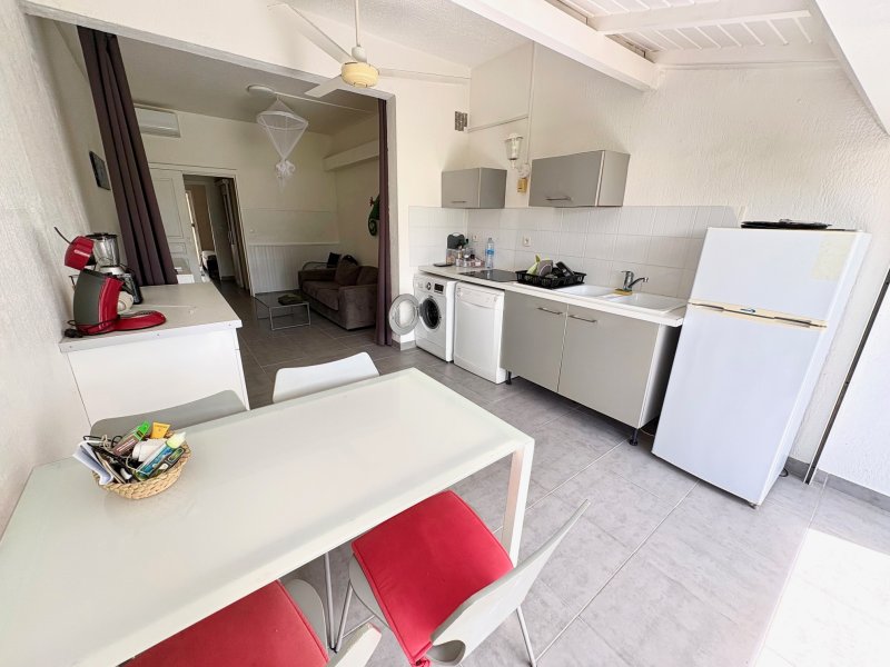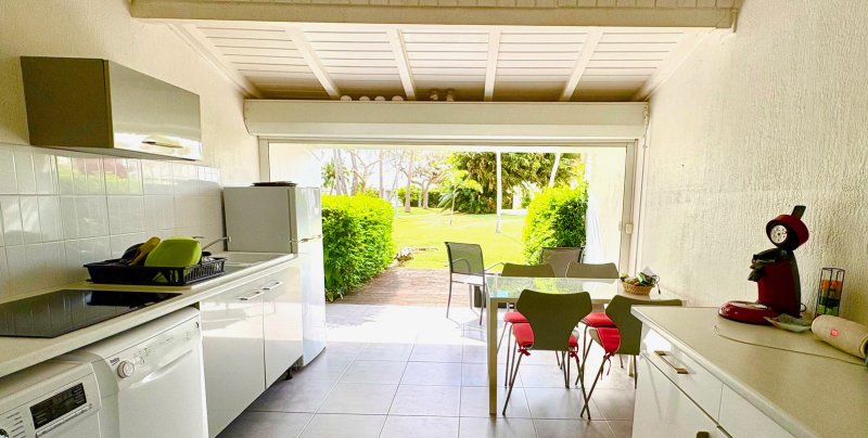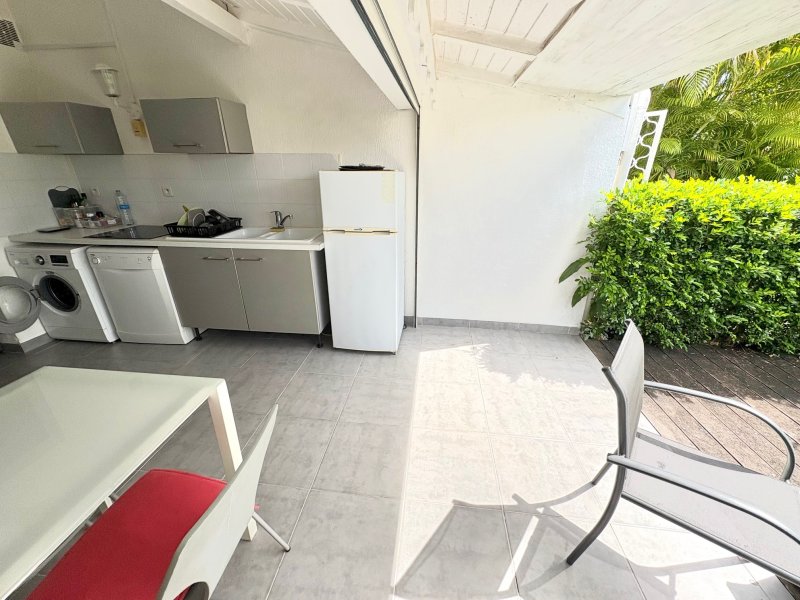 LA MARINA - Appartement T2 de 41m2 (terrasse incluse) meublé en rez de jardin dans une résidence sécurisée avec piscine, proche de toutes les commodités et sont accessibles à pied : Super U, boulangeries, restaurants, golf, médecins, pharmacies, boutiques, plages. Composé d'une grande cuisine US équipée sur terrasse prolongée par un deck, un salon climatisé, 1 couloir avec nombreux rangements, 1 chambre climatisée, 1 salle d'eau et 1 WC séparé. L'appartement est rénové et en excellent état. Pour plus d'informations contactez-nous au 05 90 85 12 20