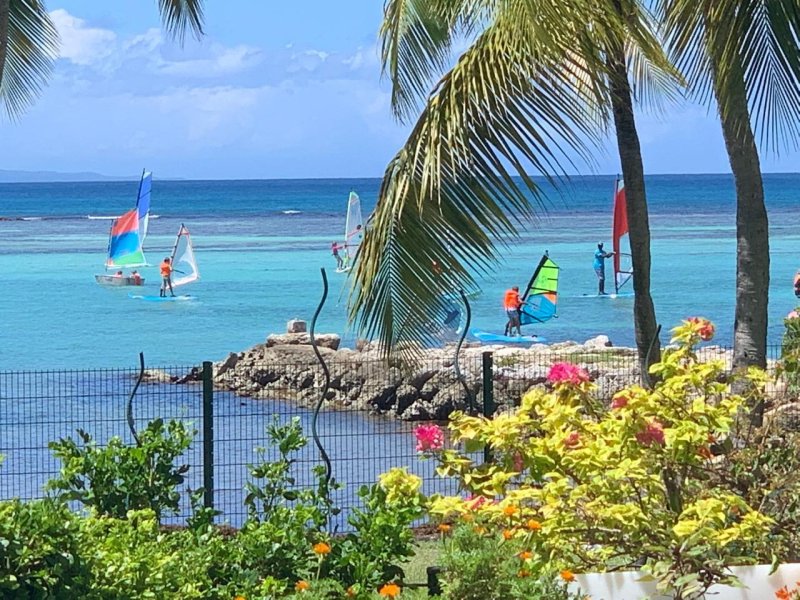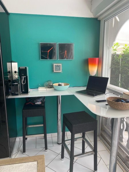 LA MARINA-SAVANNAH/VUE MER : T2 rez de jardin de 57 m2 (terrasse incluse), prestations haut de gamme contemporaines, entièrement repeint, vendu meublé, équipé, état neuf, clef en main.Composé de 1 entrée avec placard, 1 chambre climatisée, 1 salle d'eau italienne, 1 WC, 1 salon prolongé de 1 grande cuisine américaine équipée au désign ultra moderne, 1 terrasse bénéficiant de 1 pleine vue mer prolongée de 1 charmant jardin fleuri et éclairé toute la nuit avec lampes solaires. L'accès est direct pour rejoindre la plage. Rés. avec parking, borne de rechargement privative pour véhicule électrique. Les Plus : Citerne 300 L ext., fibre, moustiquaire sur chaque ouverture, home cinéma,... Commerces, restaurants, golf, gare maritime,... sont accessibles à pied. Pour plus d'informations contacter Laurence CAILLET par WHATSAPP et SMS au +590 690 002 312 ou par SMS au 0690 35 97 18 et par mail : laurence@immo971.com et/ou cailletlo971@gmail.com en laissant vos coordonnées et l'objet de votre appel.