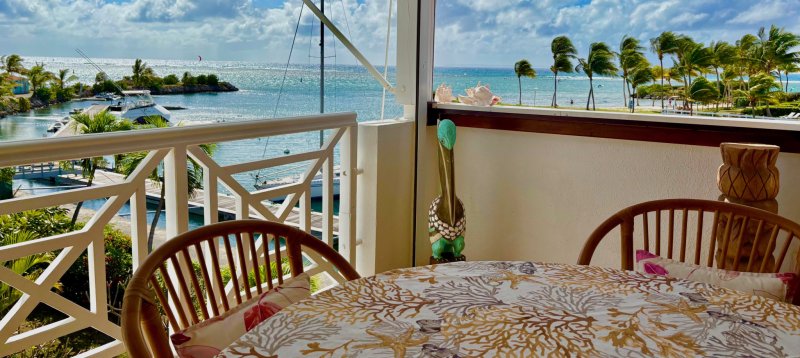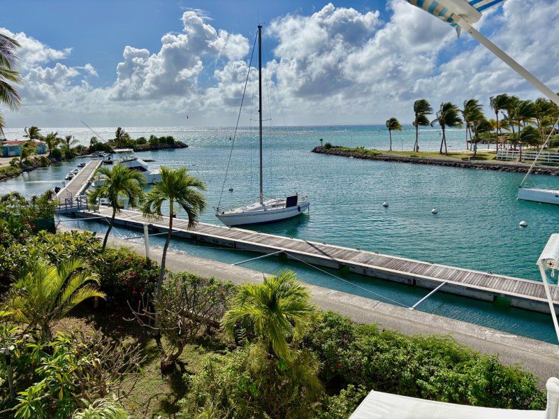 LA MARINA - Duplex T2/3 d'env. 45 m2 (avec terrasse) pleinement ouvert sur l'entrée de la Marina, il bénéficie d'une vue mer extraordinaire et d'une ventilation naturelle. Composé d'une entrée, un salon climatisé, une cuisine focntionnelle et équipée sur la grande terrasse VUE MER, une salle d'eau/WC, 1 chambre en mezzanine clmatisée avec un débarras tout en longueur. Résidence avec piscine, située à quelques encablures des restaurants, des commerces, très proche du golf et des plages. Equipé pour 4 personnes, il est vendu meublé, idéal pour y vivre à l'année ou comme pied à terre l'hiver ou encore pour générerr des revenus locatifs saisonniers, ce type de Bien est apprécié des golfeurs et des vacanciers. Pour plus d'informations contactez-nous au 05 90 85 12 20