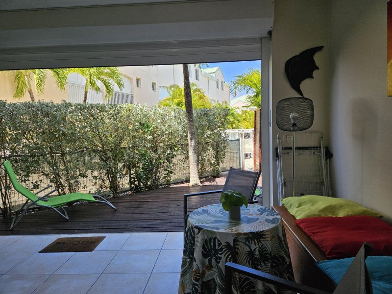 Appartement T4 en duplex à vendre Saint-François Résidence avec piscine À vendre à Saint-François, un appartement T4 en duplex situé dans une résidence sécurisée avec piscine, à proximité des commodités du Golf et des plages. Au rez-de-chaussée, il se compose d'un séjour lumineux, d'une cuisine aménagée, d'un placard de rangement, d'un dégagement, d'un WC indépendant et d'une terrasse loggia fermée par volet roulant électrique donnant sur un petit jardin privatif et clôturé. À l'étage, l'espace nuit comprend trois chambres climatisées avec placards, un dégagement, une salle d'eau et un WC indépendant. Cet appartement fonctionnel avec jardin privatif, idéal pour une résidence principale ou secondaire, bénéficie également des équipements et du confort d'une copropriété avec piscine. Les informations sur les risques auxquels ce bien est exposé sont disponibles sur le site Géorisques : www.georisques.gouv.fr