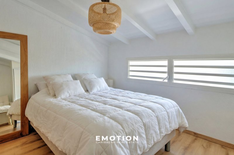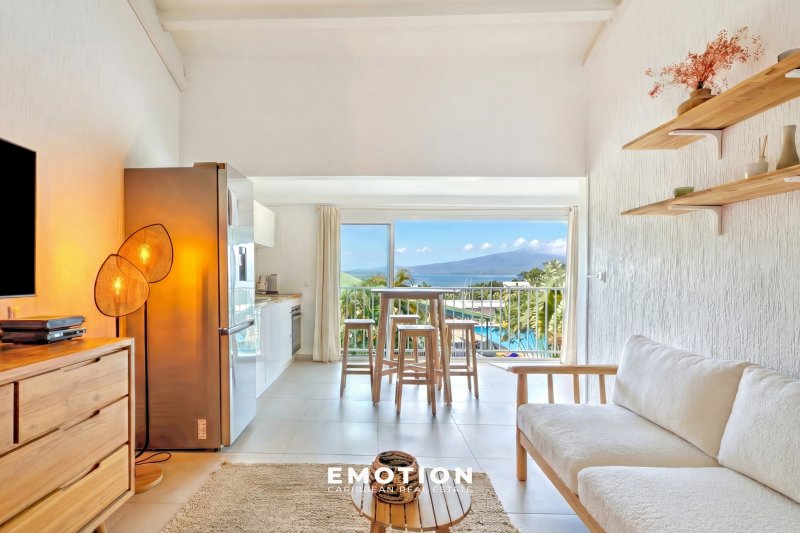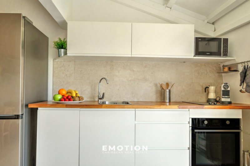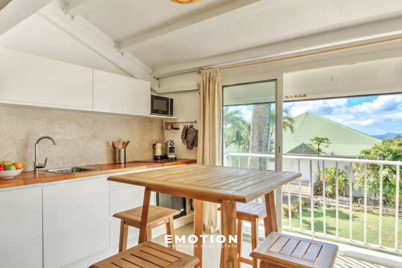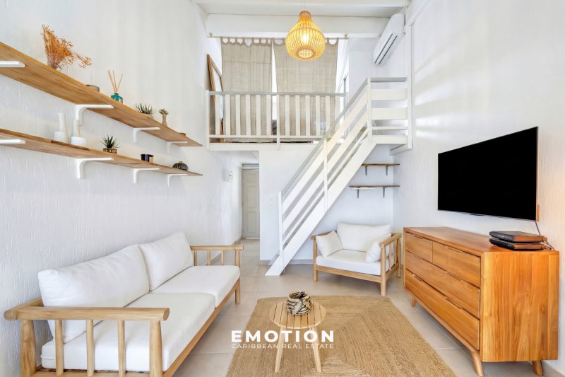 T1 bis duplex 40 m2 vue mer Marina du Gosier Nouveau mandat exclusif Le cabinet Emotion Real Estate Guadeloupe vous propose à la vente, à l'abri des risques de submersion, au 2e et dernier étage d'une résidence sécurisée avec portail électrique, un nouveau bien mitoyen d'un seul côté, offrant une vue panoramique à 180o sur la mer et les marinas du Gosier. Situé au sommet d'un morne, ce bien bénéficie d'un emplacement exceptionnel, à seulement cinq minutes à pied de la marina, des commerces, restaurants et supermarchés. Le bien se compose : d'un séjour lumineux et traversant, avec une cuisine aménagée et équipée, d'une salle d'eau avec WC, ainsi que d'une chambre en mezzanine. L'ensemble de l'appartement, entièrement refait à neuf, est climatisé. Le bien se compose en annexes : d'un système de citerne privative couplé à une pompe, permettant un approvisionnement autonome et continu en eau, 24h/24 et 7j/7, de jardins tropicaux, de places de parking libres en extérieur sécurisées avec portail électrique, couvertes et non couvertes, ainsi que d'une grande piscine commune. La résidence, sécurisée et bien entretenue, est idéale pour profiter pleinement du cadre de vie unique de la Marina du Gosier. Dominant la baie depuis son emplacement en hauteur, elle permet d'admirer chaque jour des panoramas spectaculaires et aux premières loges pour l'arrivée de la Route du Rhum. Le bien a été proposé en location saisonnière pour 1400 EUR/mois. - Exposition : Sud-Ouest - Zone PZR 2021 : Zone blanche - Prix HAI : 219 000 EUR (honoraires à la charge du vendeur) - Charges : 140 EUR/mois (incluant assurance copropriété, frais de syndic, entretien des parties communes, jardins et piscine, eau et électricité en illimité) - Taxe foncière : 857EUR/an - DPE: zone E Pour plus d'informations, contactez Jeff au +590 690 66 35 40 ou par message via WhatsApp. Retrouvez nos mandats dans toute la Caraïbe sur Instagram : @sxmrealestatelistings