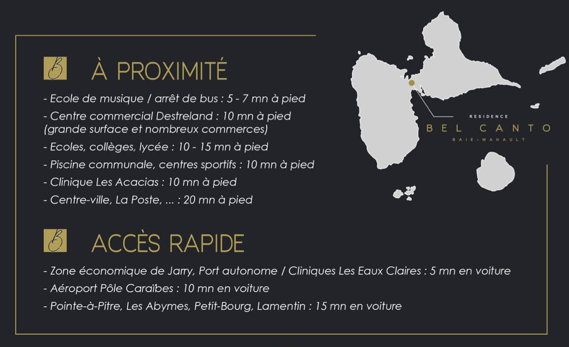 Magnifique appartement, situé au centre de la Guadeloupe, à proximité de tous les lieux culturels et économiques de la Guadeloupe, à10mn de l'aéroport. Proche des Lycées de Petit Bourg, deBaie -Mahault et des Abymes. A 20mn de l'Université des Antilles. Très proche du Collège de Gourdeliane. 5mn de la Zonne industrielle de Jarry Résidence privée avec piscine collective. Portail d'entrée connecté aux appartements. Rentabilité assurée Me contacrter directementg au 0690431212. Me contacter directement au 0690 431212