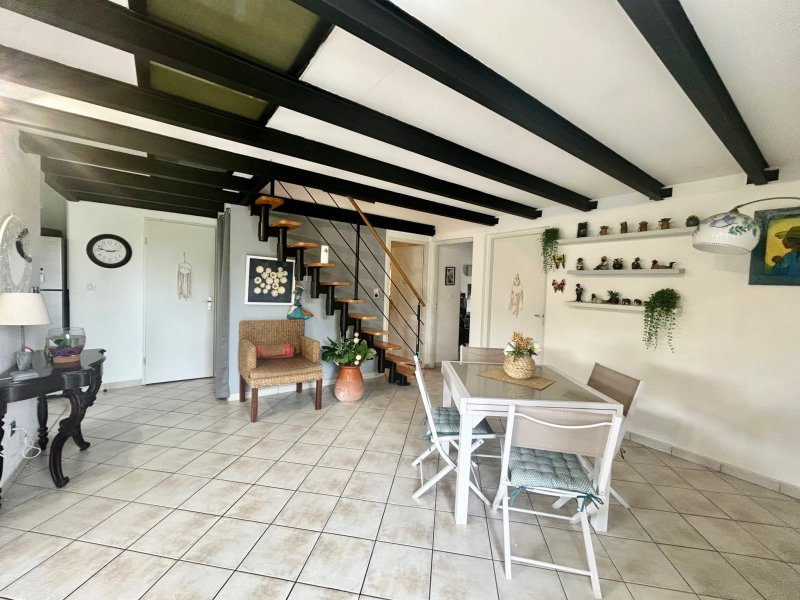 En EXCLUSIVITÉ, situé au coeur d'une résidence sécurisée avec piscine, découvrez cet appartement atypique de type T4 Duplex d'environ 80m2 à Moudong Sud, idéalement placé à proximité des commerces et des axes routiers. Description : Un séjour prolongé par une ancienne terrasse habilement fermée, offrant un bel espace de vie supplémentaire. Une cuisine américaine aménagée et équipée. Deux chambres climatisées avec placards intégrés Une salle de bain avec WC À l'étage : une chambre parentale comprenant sa propre salle d'eau et WC privatif. Une place de parking privative. Informations complémentaires Aucun travaux à prévoir Résidence sécurisée avec portail électrique. Piscine privative au sein de la résidence. Emplacement stratégique : commerces, écoles et axes routiers à proximité immédiate. Situé à l'étage en bout de résidence... donc aucun vis à vis Cet appartement atypique, fonctionnel et en partie meublé, est idéal pour une petite famille, un premier achat ou un investissement locatif. Les agences partenaires du MLS Caraïbes collaborent étroitement pour vendre ce bien en exclusivité, dans les meilleures conditions.