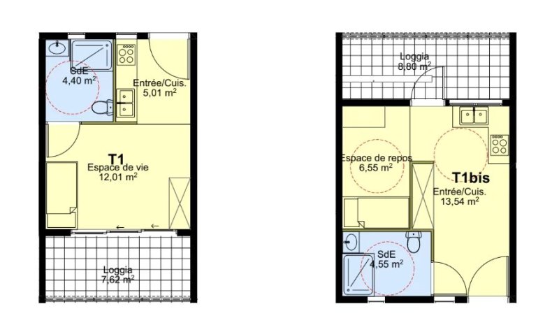 Ce T1 bien agencé propose une cuisine ouverte de 5 m² donnant sur un espace de vie lumineux de 12 m², ainsi qu’une salle d’eau fonctionnelle. Une loggia vient prolonger l’ensemble pour profiter d’un espace extérieur agréable.