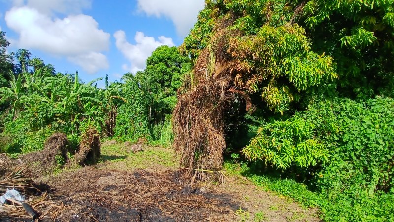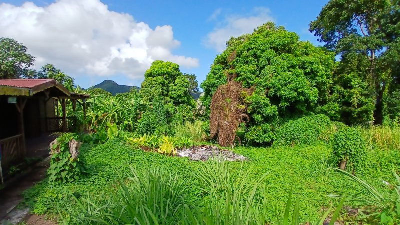 SAINTE ROSE-Duzer: Parcelle boisée de 4921m2, divisible, avec une maison construite en béton et bois, à rénover. Zone UG du PLU avec 25% d'emprise possible et R+1. Produit rare à ce prix.