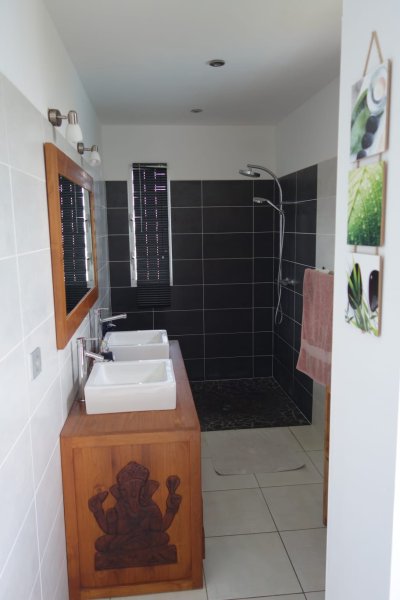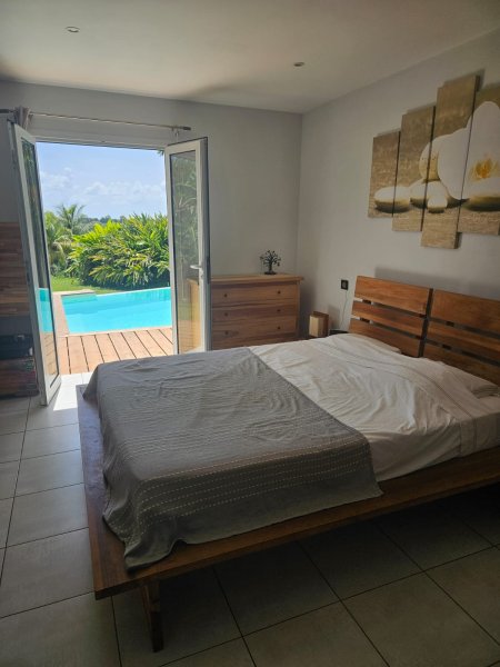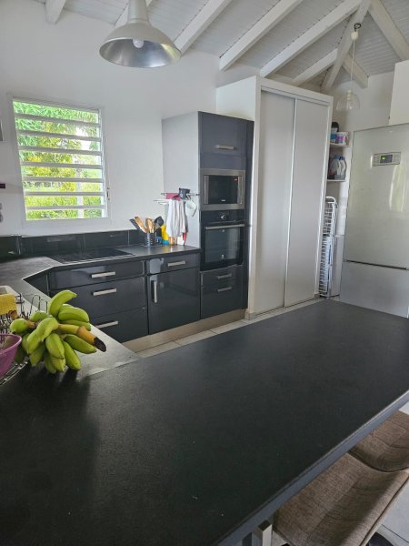 Située entre Sainte-Rose et Deshaies, dans un quartier résidentiel très calme en impasse, cette belle maison construite en 2010 offre un cadre de vie paisible et verdoyant. Édifiée sur un terrain de 1 014 m2, elle séduit par son confort, sa fonctionnalité et sa superbe vue sur le Grand Cul-de-Sac Marin. La maison dispose de trois chambres climatisées, dont une suite parentale avec salle d'eau, WC et dressing. Une seconde salle de bains avec WC vient compléter l'espace nuit. La pièce de vie lumineuse comprend un salon convivial et une cuisine fonctionnelle avec cellier attenant. L'ensemble s'ouvre sur une grande terrasse couverte de 35 m2, idéale pour profiter de la vue mer et des couchers de soleil. Côté extérieur, vous serez charmé par la piscine à débordement entourée d'un deck neuf, parfaite pour se détendre en toute tranquillité. Le terrain, arboré et fleuri, accueille de nombreux fruitiers tels que manguiers, bananiers, arbre à pain, cocotiers, ainsi que plusieurs plantes médicinales. La maison est équipée de la fibre optique et d'un chauffe-eau solaire, gages de confort et d'économie d'énergie. Elle dispose également d'une citerne tampon et d'une cuve de récupération des eaux de pluie à remettre en fonction. Le parking bétonné permet de stationner deux véhicules et offre la possibilité d'installer une borne de recharge pour voiture électrique. Cette propriété, qui peut être vendue meublée, représente une belle opportunité, que ce soit pour une résidence principale, secondaire ou un projet locatif saisonnier. Un bien rare sur le secteur, à visiter sans tarder !