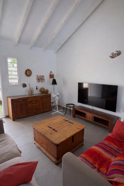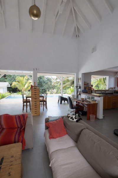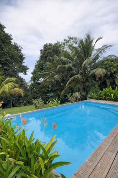 Dans un lotissement prisé sur les hauteurs de Sofaia, découvrez cette belle maison indépendante de plain-pied et son grand terrain arboré, Elle se compose d'une vaste pièce de vie lumineuse avec charpente apparente, d'une cuisine américaine équipée, et de trois chambres climatisées dont une suite parentale avec salle de bain privative. Vous trouverez également une salle d'eau avec douche à l'italienne, un WC indépendant et une répartition des espaces idéale pour un projet familial. À l'extérieur, vous profiterez d'un grand jardin incluant un espace de forêt tropicale, d'une agréable terrasse et d'une piscine au sel avec son local technique de 9m2. Localisation parfaite et maison bien entretenue, offrant un cadre de vie calme et confortable. Possibilité de construire un gite !