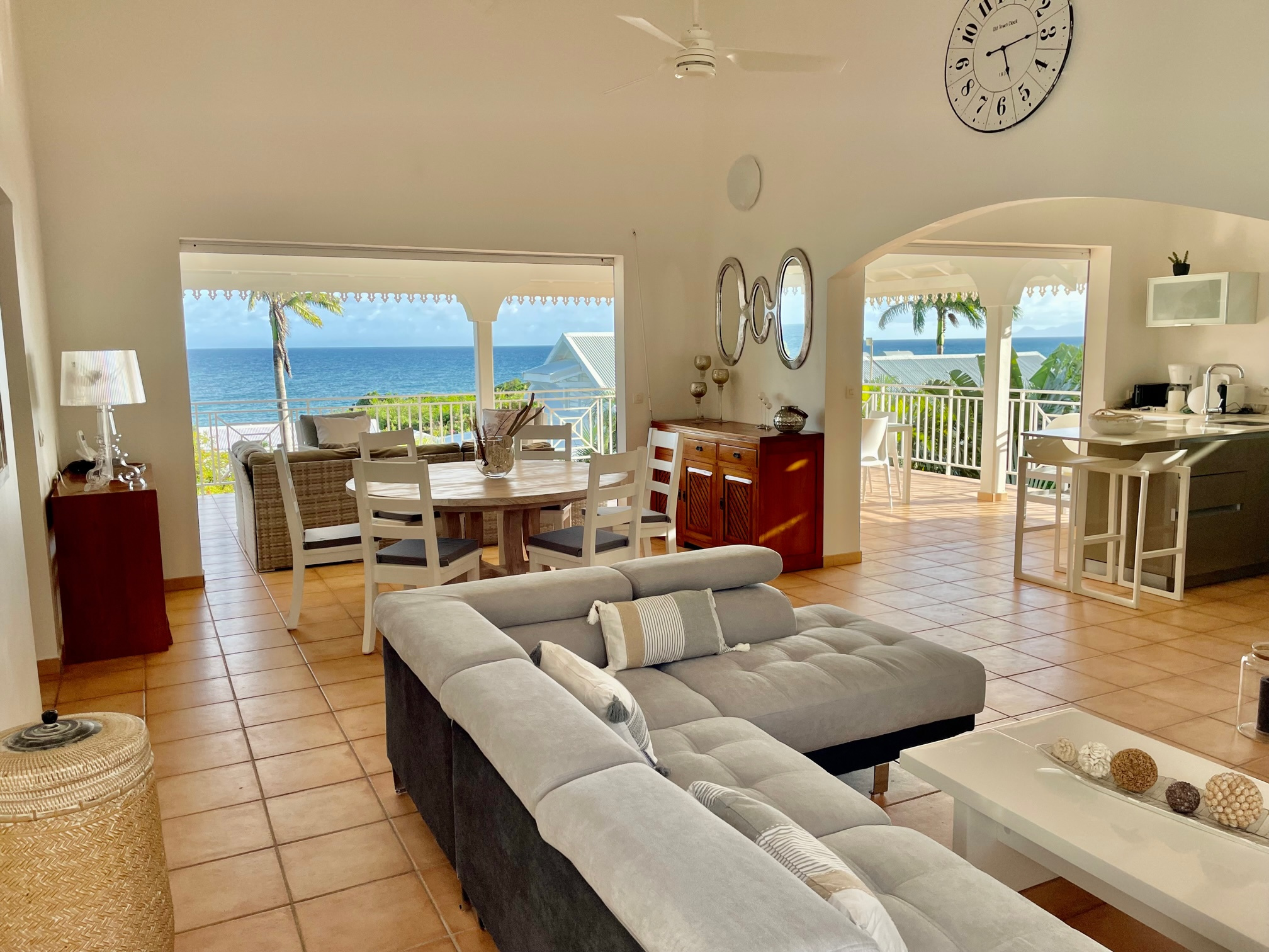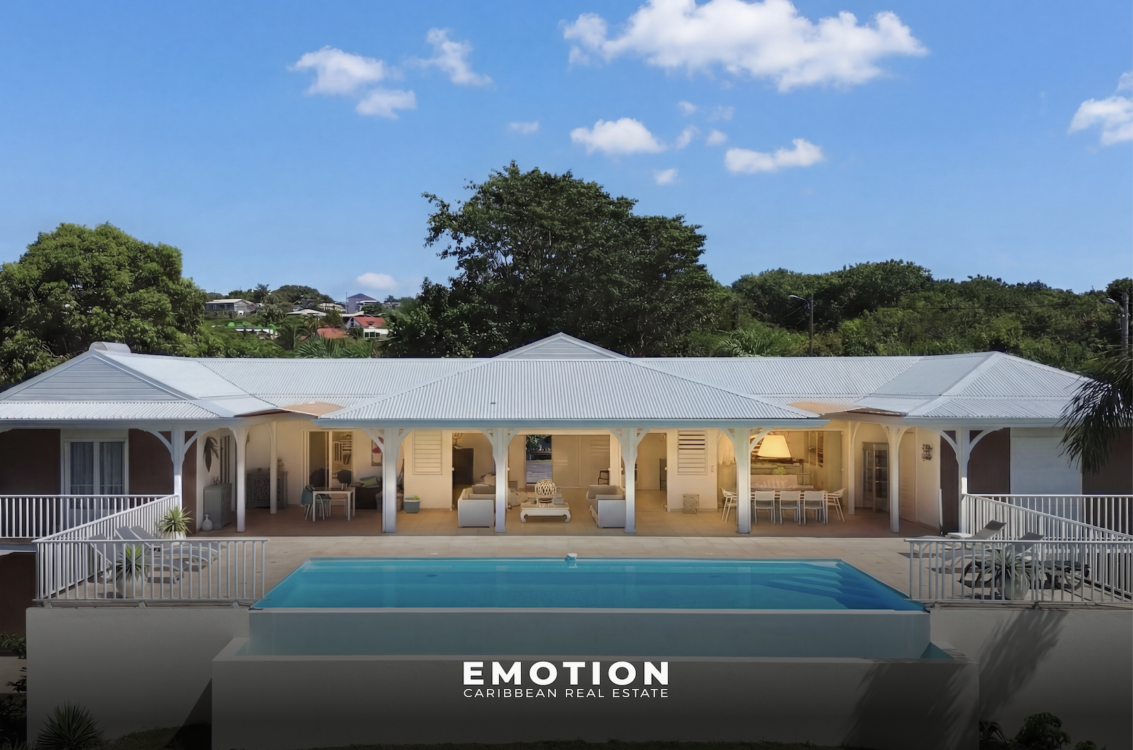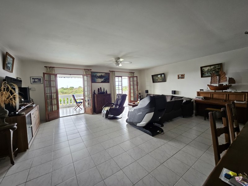 Propriété avec villa et deux appartements Piscine Saint-François Située à Saint-François, cette propriété de 10 pièces développant environ 245 m2 habitables est implantée sur un terrain de 3 300 m2 et se compose d'une villa principale de type T4 et de deux appartements T3 indépendants, offrant de nombreuses possibilités d'usage, notamment pour un projet familial ou un investissement locatif. La villa principale d'environ 148 m2 comprend un hall d'entrée, une cuisine aménagée et équipée avec cellier, un salon ouvert sur la terrasse, un WC indépendant, trois chambres dont une suite parentale avec dressing et salle de bain, ainsi qu'une seconde salle d'eau. L'espace de vie se prolonge par une grande terrasse de 70 m2, protégée par des volets roulants électriques et des stores. Au rez-de-jardin, deux appartements T3 identiques de 48 m2 chacun disposent chacun de deux chambres, d'un séjour avec cuisine ouverte, d'une salle d'eau et d'une terrasse de 28 m2 orientée vers la piscine. Ces appartements sont vendus meublés, tandis que la villa principale est vendue non meublée. L'extérieur accueille une piscine au sel de 11 mètres de long et 7,5 mètres au plus large, entourée d'une plage piscine et d'une douche extérieure, offrant un espace de détente agréable. La propriété dispose également d'un garage en sous-sol d'environ 80 m2 pouvant accueillir trois véhicules, ainsi que de trois places de stationnement supplémentaires sous auvents. Une citerne d'eau de ville complète les équipements. Ce bien rare sur le secteur de Saint-François allie volumes, indépendance des espaces et potentiel locatif dans un environnement privilégié. Les informations sur les risques auxquels ce bien est exposé sont disponibles sur le site Géorisques : www.georisques.gouv.fr