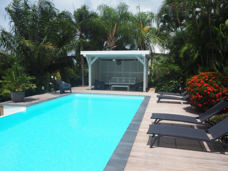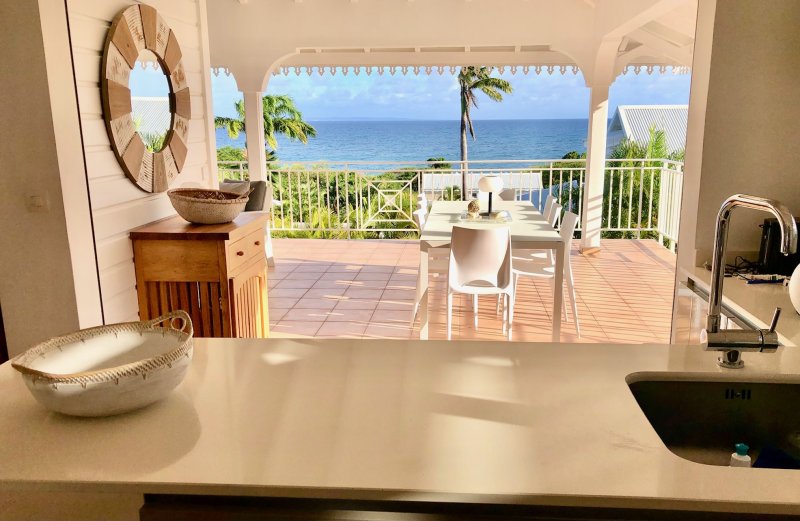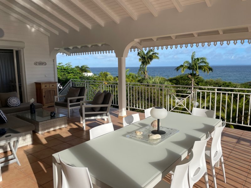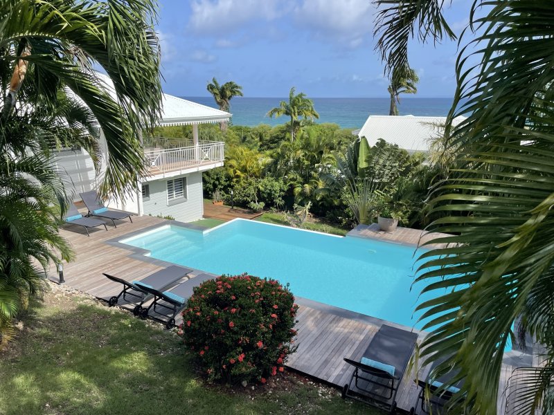 MAGNIFIQUE VILLA VUE MER F4 de 187 m2 env. (avec terrasse comprise) + studio de 31 m2 indépendant sur une parcelle de 1100 m2 env., avec jardin paysagé, quartier résidentiel recherché, proche plage et spot de surf. Composée d'un salon vue mer, d'une cuisine US agencée vue mer, 1 cellier, 1 suite parentale avec salle d'eau/WC/dressing, 2 chambres climatisées avec placards, 1 salle d'eau, 1 WC séparé et 1 terrasse de 45 m2 vue mer. Une grande piscine de 9.70m x 4.40m face à la mer et 1 carbet idéal pour vous laisser bercer par les Alizés. Les prestations sont d'excellentes qualités, tout est pensé pour un confort optimal. Une citerne est raccordée à l'installation et un garage complète l'ensemble indispensable pour stocker le matériel. Pour plus d'informations contacter Laurence CAILLET par WHATSAPP et SMS au +590 690 002 312 ou par SMS au 0690 35 97 18 et par mail : laurence@immo971.com et/ou cailletlo971@gmail.com en laissant vos coordonnées et l'objet de votre appel.