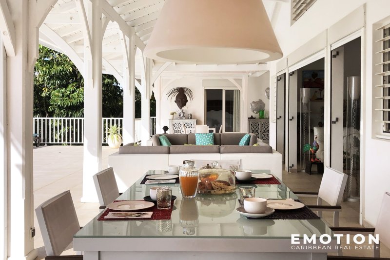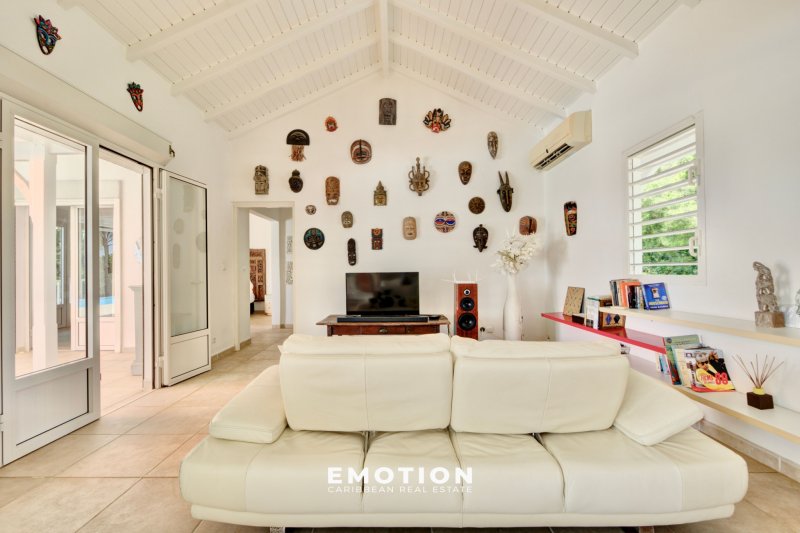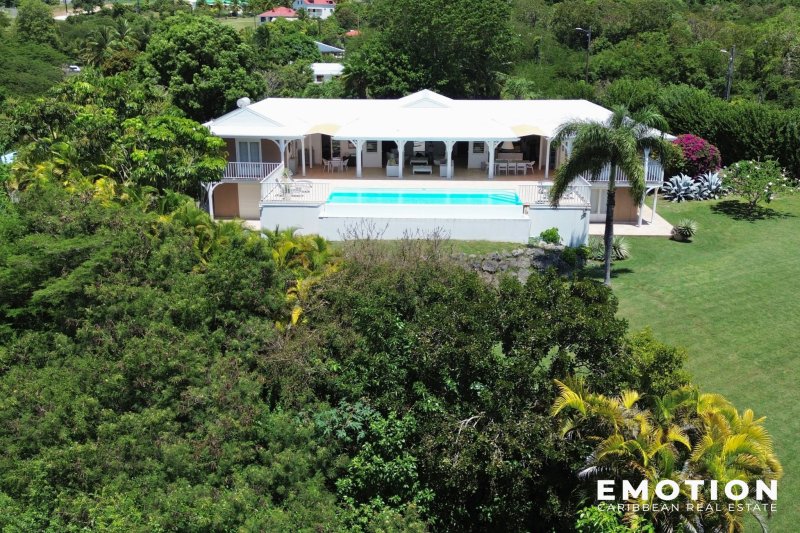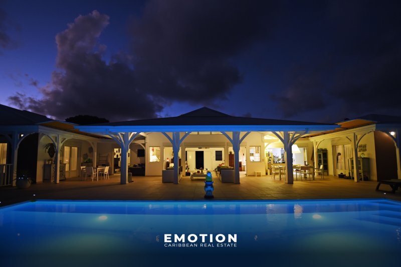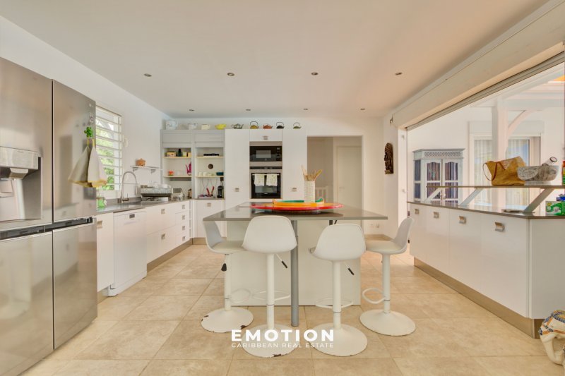 VILLA T5 250 m2 sur 3 000 m2 de terrain Sainte - Anne Nouveau mandat Le cabinet EMOTION, vous présente un nouveau bien à la vente, dans les hauteurs de Sainte Anne, à 5minutes du centre ville pour les commerces, restaurants, et la plage du bourg. Bâti sur une terrain de 3 000 m2, la villa est entouré par la nature. Le bien se compose : d'une entrée spacieuse donnant sur la pièce de vie ouverte sur une grande terrasse couverte, une cuisine équipée et aménagée ouverte sur les extérieurs permettant plus de convivialité lors de vos réceptions, ainsi qu'un espace salon pour un moment plus intime en famille, une chambre parentale avec placard de rangement et une salle d'eau équipée d'une douche à l'italienne, dressing, une seconde chambre avec placard de rangement et une salle d'eau privative équipée d'une douche à l'italienne, la chambre no3 et no4 sont séparée quant à elle par une salle d'eau et un WC. Pour votre télé-travail un espace bureau climatisée avec armoire de rangement est à votre disposition. La vie de la villa est orienté complètement en direction de la terrasse et de sa piscine incontournable offrant au loin une vue dégagée sur la mer sans aucun vis à vis. La villa de plain pied se compose en annexe : 3 000m2 de terrain avec vue mer, un espace bureau climatisé indépendant, une citerne tampon eau de ville, une citerne eau de pluie, portail électrique avec plus de 8 places de stationnement extérieur. - Zone PPRN : Blanche - Taxe Foncière : 5 500 EUR - Prix HAI: 1 250 000 euros