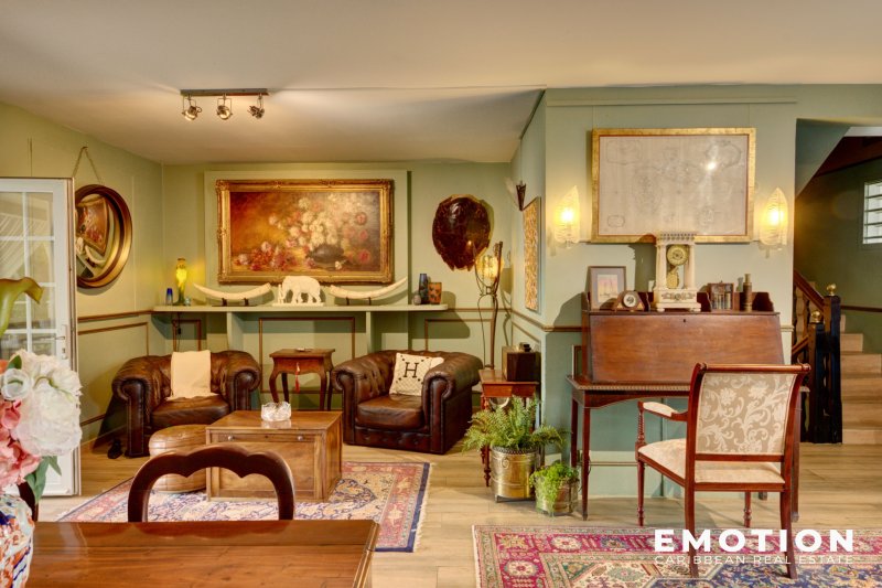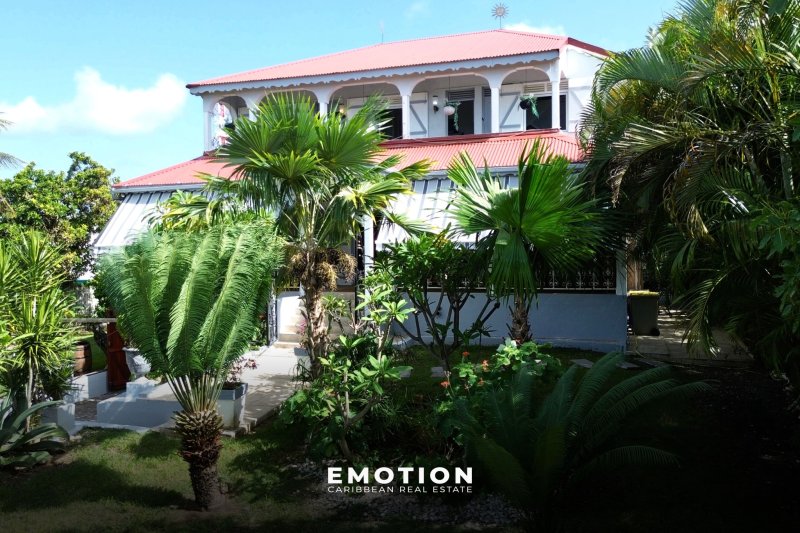 Villa élégante Créole T5 Saint-François Le cabinet EMOTION Real Estate Guadeloupe, vous propose un nouveau bien à la vente sur la commune de Saint-François appréciée en particulier pour son lagon, son aérodrome et son Golf international. C'est une villa familiale pleine de charme qui évoque avec beaucoup d'élégance les grandes habitations créoles. Elle se situe dans un secteur calme sur une parcelle à double entrée clôturée et arborée de 983 m2. La Villa de 165 m2 se compose de: un salon traversant et ventilé de 33 m2, une cuisine séparée de 16 m2 entièrement équipée avec un accès extérieur, un une chambre ou bureau de 12 m2, une galerie ombragée de 40 m2 A l'étage, 1 suite de 23 m2 avec sa salle de bain, 2 chambres avec placards, 1 salle d'eau avec douche à l'italienne. Le palier de 18 m2 est parfait pour un coin lecture ou une salle de jeux En sous sol, un garage de 54 m2 qui peut facilement se transformer en studio et garage comme initialement prévu à la construction. La galerie extérieure protégée vous accueille pour des instants de détente et des repas partagés. Le jardin planté d'arbres fruitiers et le bassin prolongent cette atmosphère paisible. Le terrain peut accueilir une piscine qui a déjà fait l'objet d'un projet. Solide et chaleureuse, cette villa est empreinte d'authenticité et de caractère. Le bien se compose en annexe : - citerne - 3 places de stationnement aérien dont 1 ombragée - 2 accès indépendants avec 2 portails électriques - Le terrain est piscinable - DPE: A - Taxe Foncière : 3209 EUR - PPRN 2019 : Zone Blanche - Prix : 649 000 EUR HAI, les honoraires sont à la charge du vendeur Pour toute information complémentaire ou pour organiser une visite, n'hésitez pas à nous contacter au +33 6 73 39 15 48 Restez également informés de nos dernières opportunités en nous suivant sur Instagram : @florence.emotion.realestate