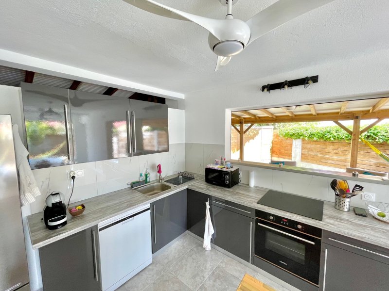 MAISON DE VILLE NEUVE F5 DE 216 m2 env. (terrasses comrises). Plage, collège, écoles, commerces et clubs sportifs accessibles à pied : maison familiale idéale pour famille avec enfants scolarisés et sportifs. Composée d'un salon avec cuisine US équipée, 1 cellier, 1 grand atelier/garage 2 roues et buanderie, 2 vastes terrasses ventilées, la chambre parentale est climatisée avec salle d'eau, 1 WC séparé, 2 chambres, 1 salle d'eau/WC, la 4ème chambre a été aménagée en studio indépendant climatisé, avec cuisine, salle d'eau/WC et terrasse. Parcelle d'env. 400 m2 clos, avec des petits jardins faciles d'entretien, 1 petite piscine, 1 local pour stocker surfs ou autres matériels, citerne, CE solaire, toiture neuve. Dsiponible de suite. Pour plus d'informations contacter Laurence CAILLET par WHATSAPP et SMS au +590 690 002 312 ou par SMS au 0690 35 97 18 et par mail : laurence@immo971.com et/ou cailletlo971@gmail.com en laissant vos coordonnées et l'objet de votre appel.