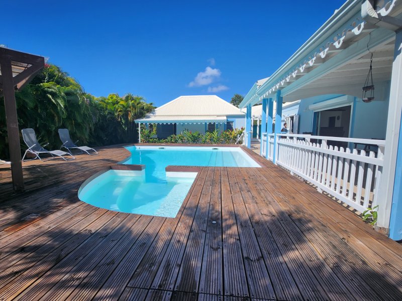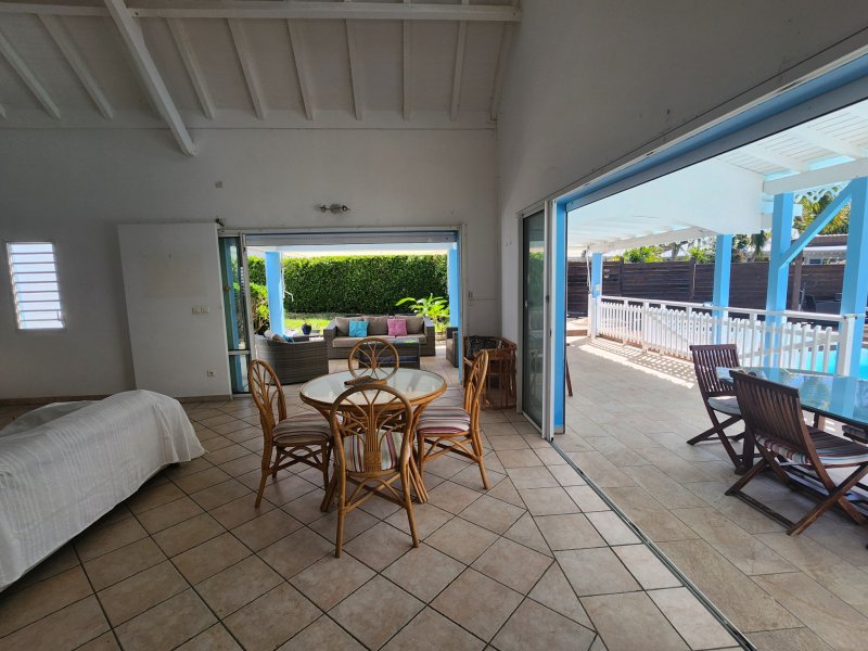 Villa d'exception avec piscine et bungalow Saint-François, Guadeloupe Située dans l'un des lotissements les plus prisés de Saint-François, sur une magnifique parcelle paysagée de 1 000 m2, cette villa de 177 m2 habitables offre un cadre de vie privilégié, alliant confort, volumes généreux et prestations de qualité. La maison principale se compose d'un vaste salon lumineux avec une belle hauteur sous plafond et une superbe charpente apparente, d'une grande cuisine équipée avec cellier attenant, ainsi que de trois chambres climatisées, dont une suite parentale avec dressing, salle d'eau et accès direct au jardin et à la piscine. Vous trouverez également une seconde salle d'eau, un WC indépendant, des espaces de dégagement et de nombreux rangements. À l'étage, une chambre avec salle d'eau offre un espace idéal pour un coin enfants ou invités. À l'extérieur, profitez d'une immense terrasse couverte, d'un grand deck, d'une piscine avec jacuzzi intégré, parfaits pour les moments de détente et de convivialité. Un bungalow indépendant tout confort complète ce bien, avec cuisine, terrasse, chambre avec placard et salle d'eau avec WC, idéal pour recevoir ou pour un projet locatif. Un garage, un terrain entièrement clôturé, paysagé avec portail électrique, viennent parfaire cette propriété. Aucun gros travaux à prévoir, il vous suffira de la mettre à votre goût. Bien rare sur le secteur à visiter sans tarder ! DPE NOTE C 25 kWh/m2 an, tous les diagnostics réalisés Taxe foncière : 2800 EUR Prix de vente : 650 000 euros Honoraires charge vendeur Les informations sur les risques auxquels ce bien est exposé sont disponibles sur le site Géorisques : www.georisques.gouv.fr Contactez-moi pour vos questions et visites, Vanessa ESTEBE au 0690 86 31 32 Agence IMMO 971 0590 90 90 86 Mail : v.estebe@immo971.com Agissant en tant qu'agent commercial RSAC No 487 624 777 POINTE A PITRE 'Les informations sur les risques auxquels ce bien est exposé sont disponibles sur le site Géorisques http://www.georisques.gouv.fr' Mandat réf 9242