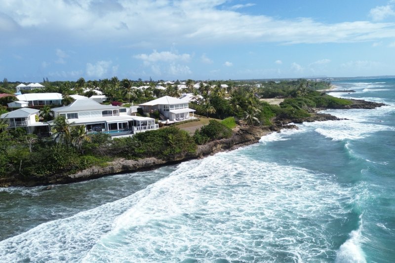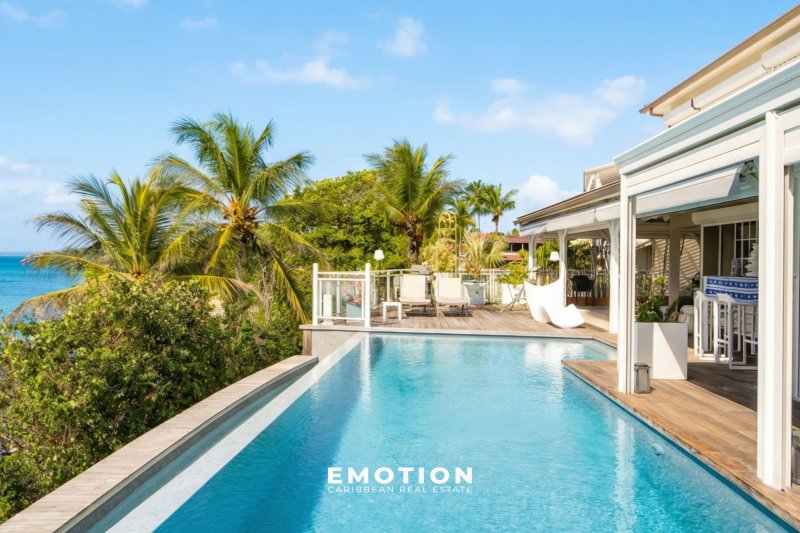 Villa 1ère ligne mer 3 chambres + 2 studios indépendants Saint-François (Guadeloupe) NOUVEAUTÉ Le cabinet EMOTION Real Estate Guadeloupe vous présente une nouvelle opportunité immobilière à Saint-François, commune particulièrement recherchée pour son art de vivre, son golf international, son aérodrome et son célèbre lagon aux eaux turquoise. Située au sein d'une résidence sécurisée, cette propriété de 240 m2 édifiée sur un terrain de 794 m2 profite d'un emplacement rare en première ligne mer, avec une vue panoramique exceptionnelle. La plage est accessible à pied. La villa principale de 180 m2 se compose de 3 chambres, 2 dressings, 2 salle d'eau, 1 espace buanderie. A l'étage inférieur, l'espace de vie comprend une cuisine équipée, salon et salle à manger, Un autre espace avec salon extérieur et cuisine permet de recevoir autour de la piscine à débordement et de la terrasse de 125 m2 Le bien se compose également de 2 studios indépendants de 30 m2 chacun offrant également la vue mer depuis leur balcon Le bien se compose en annexe : - 1 garage et 2 places de stationnement aériennes couvertes - 1 portail - 1 piscine à débordement - Citerne - DPE: D - Taxe Foncière : EUR - PPRN 2019 : Zone Blanche - Prix : 1 695 000 EUR HAI, honoraires à la charge du vendeur Pour plus d'informations ,contactez Florence Caruso par téléphone ou Whatsapp au +33 6 73 39 15 48