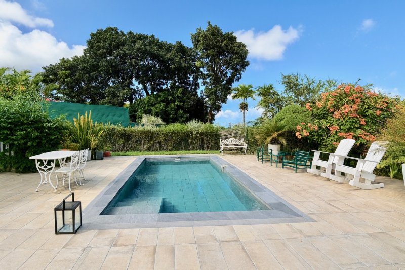 Située dans un lotissement résidentiel recherché et parfaitement sécurisé à Petit-Bourg, cette villa de plain-pied de 179 m2 de surface totale offre de beaux volumes et un cadre de vie harmonieux, alliant élégance, confort et rénovation de qualité. Dès l'entrée, un hall accueillant mène vers un vaste séjour lumineux, sublimé par ses volumes généreux, ainsi qu'une cuisine rénovée avec goût, conçue pour être à la fois fonctionnelle et conviviale. La partie nuit propose trois chambres, auxquelles s'ajoute une quatrième chambre aménagée en dressing sur mesure, ainsi que quatre salles d'eau, dont une avec son WC privatif. Un WC indépendant complète cet espace. La terrasse fermée, véritable pièce de vie supplémentaire, s'ouvre directement sur la piscine, créant un espace idéal pour profiter d'un environnement verdoyant et apaisant. Au sous-sol, un espace de rangement offre un confort supplémentaire pour l'organisation et le stockage. À l'extérieur, le magnifique jardin paysagé, entièrement clôturé et accessible par un portail électrique, assure intimité et sécurité. L'ensemble du terrain met en valeur la villa et renforce la sensation d'espace et de tranquillité. Cette propriété allie standing, beaux volumes et rénovation soignée, dans l'un des secteurs les plus attractifs de Petit-Bourg