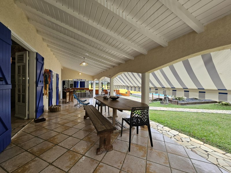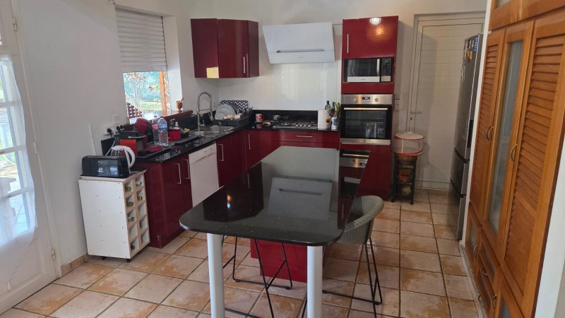 Propriété avec 2 villas, garage et piscine à vendre Le Lamentin Terrain 2 654 m2 Située au Lamentin, cette propriété offre un ensemble immobilier composé de deux habitations implantées sur un terrain de 2 654 m2 entièrement clôturé et sécurisé par un portail électrique. La villa principale, construite sur deux niveaux, développe une surface habitable d'environ 113 m2. Elle comprend un salon, une cuisine, trois chambres dont deux climatisées et une aménagée en mezzanine, une salle d'eau avec WC et une salle de bain avec WC. Une grande terrasse couverte en L d'environ 65 m2 prolonge les espaces de vie vers l'extérieur. La propriété dispose également d'une piscine avec carbet, d'un garage et d'une buanderie extérieure. la seconde masion bois beton de 46 m2 habitable, vendu meublé, complète l'ensemble. elle se compose de deux chambres climatisées, d'une salle d'eau, d'un WC, d'un salon, d'une cuisine aménagée et équipée et d'une terrasse d'environ 18 m2. Cet ensemble immobilier offre de nombreuses possibilités, que ce soit pour une résidence principale avec logement indépendant, un projet familial ou un investissement locatif. Les informations sur les risques auxquels ce bien est exposé sont disponibles sur le site Géorisques : www.georisques.gouv.fr