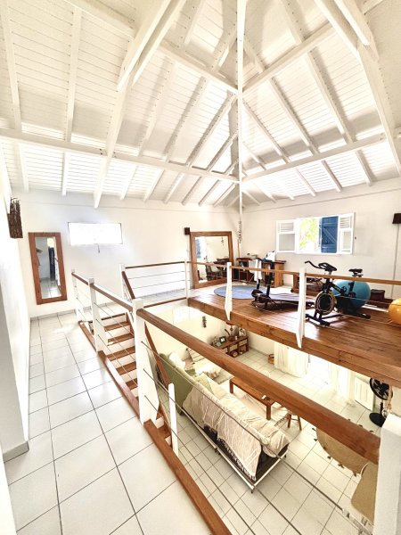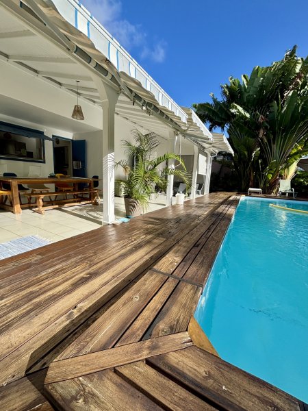 Située dans une impasse calme au coeur du très recherché Bourg du Gosier, cette villa de 120 m2, parfaitement entretenue, offre de très beaux volumes et un cadre de vie idéal, à proximité immédiate des écoles, commerces et transports. Édifiée sur un terrain arboré de 600 m2, elle propose une organisation fonctionnelle et des espaces lumineux ouverts sur l'extérieur. Caractéristiques principales : 4 chambres, dont une suite parentale avec dressing Un dressing indépendant à l'étage 3 salles d'eau 3 WC Séjour de 30 m2, ouvert sur la terrasse et la piscine Cuisine aménagée et équipée, avec passe-plat et petit bar, donnant également sur la terrasse Mezzanine aménagée, actuellement utilisée comme salle de sport, offrant une véritable surface supplémentaire polyvalente (bureau, espace jeux, coin lecture...) Grande piscine de 11 m x 4 m, parfaitement entretenue Jardin arboré agréable Panneaux solaires récents Garage fermé et portail électrique DPE classe B Prix : 575 000 EUR honoraires inclus Intéréssé(e) ? Contactez Virginie au 06 90 70 26 75
