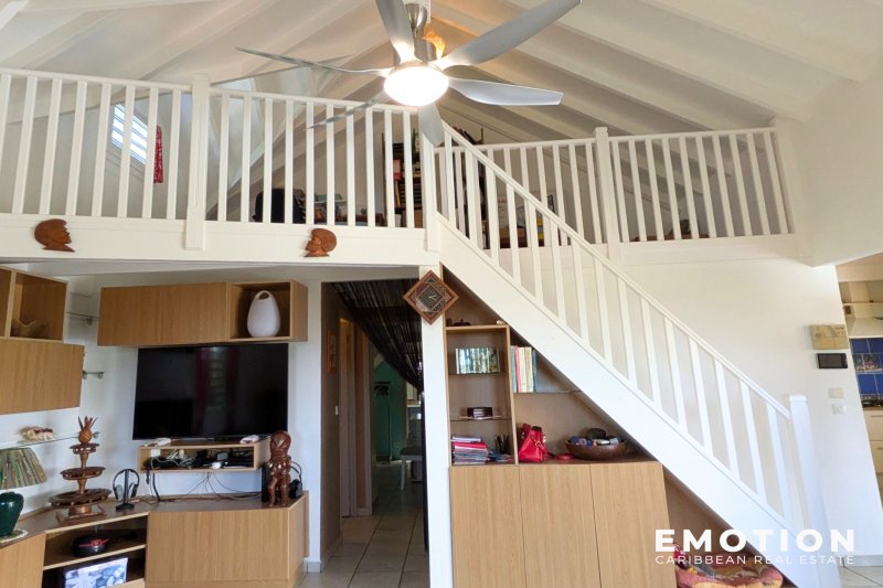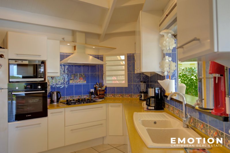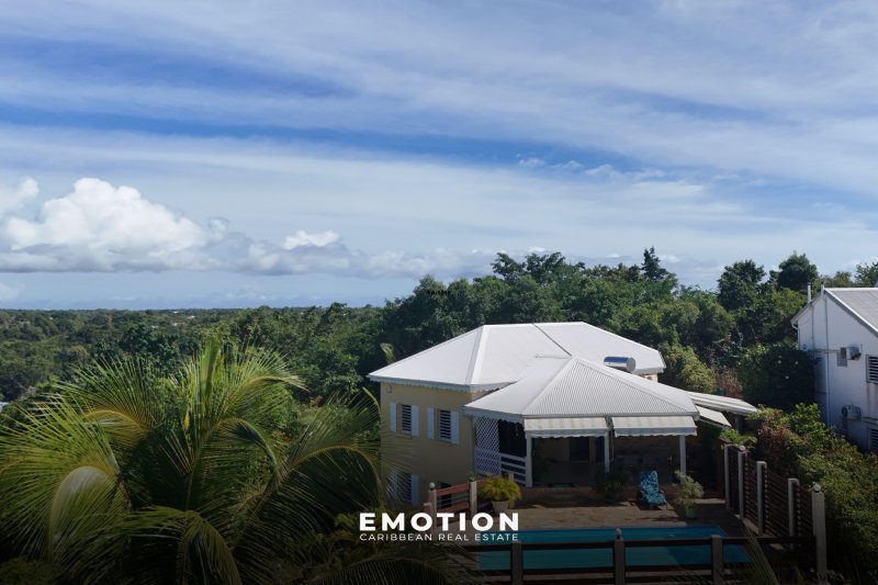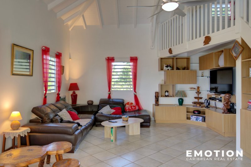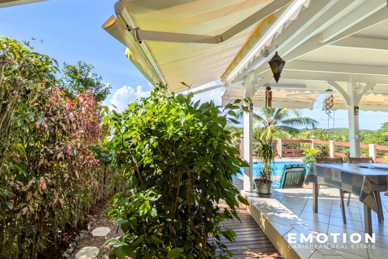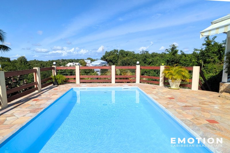 ---- SOUS OFFRE ---- Villa 3 chambres + Appartement 1ch au Gosier ( Guadeloupe) EXCLUSIVITE Le cabinet EMOTION Real Estate Guadeloupe, vous propose un nouveau bien à la vente sur la commune du Gosier. Implantée sur un terrain de 900 m2, la villa se situe dans les hauteurs beneficiant d'une vue complètement dégagée. La Villa de 125 m2 se compose d'un salon de 30 m2 ouvert sur la terrasse couverte de 26 m2, une mezzanine de 12 m2 accessible depuis le salon, une cuisine semi ouverte de 9 m2 entièrement équipée, 1 suite climatisée de 12 m2 avec placards et salle d'eau avec douche à l'italienne de 4 m2, 2 chambres climatisées avec placards de 11 m2 avec chacune leur propre mezzanine de 4.5 m2 permettant de disposier le lit à l'étage ou un bureau, 1 salle de bain partagée de 6 m2 avec douche à l'italienne, En complément avec un accès indépendant au niveau inférieur, un appartement de 29 m2 composé d'une chambre climatisée de 12 m2, une salle de bain avec douche à l'italienne de 6 m2 et une cuisine fermée de 12 m2 semi équipée. La villa en béton a été bien entretenue. La terrasse est ombragée et ventilée pour profiter pleinement de déjeuner à proximité de la piscine. C'est une villa confortable et familiale. Le bien se compose en annexe : - 1 carbet de 20 m2 - 2 places de stationnement aérien - 1 portail électrique avec moteur neuf - 1 piscine au sel - Citerne 5 300 l d'eau pluviale et 2 citernes d'eau de ville de 800 et 1200l - Toiture vérifiée et entretenue - DPE: A - Taxe Foncière : 2 182 EUR - Petite copropriété calme de 8 maisons, charge 255EUR /an - PPRN 2019 : Zone Blanche - Prix : 495 000 EUR HAI, honoraires à la charge du vendeur Pour plus d'informations ,contactez Florence Caruso par téléphone ou Whatsapp au +33 6 73 39 15 48
