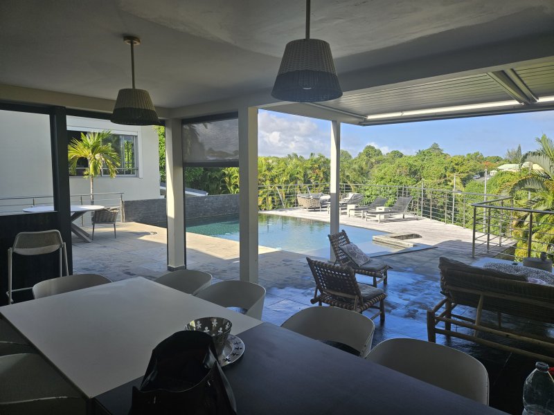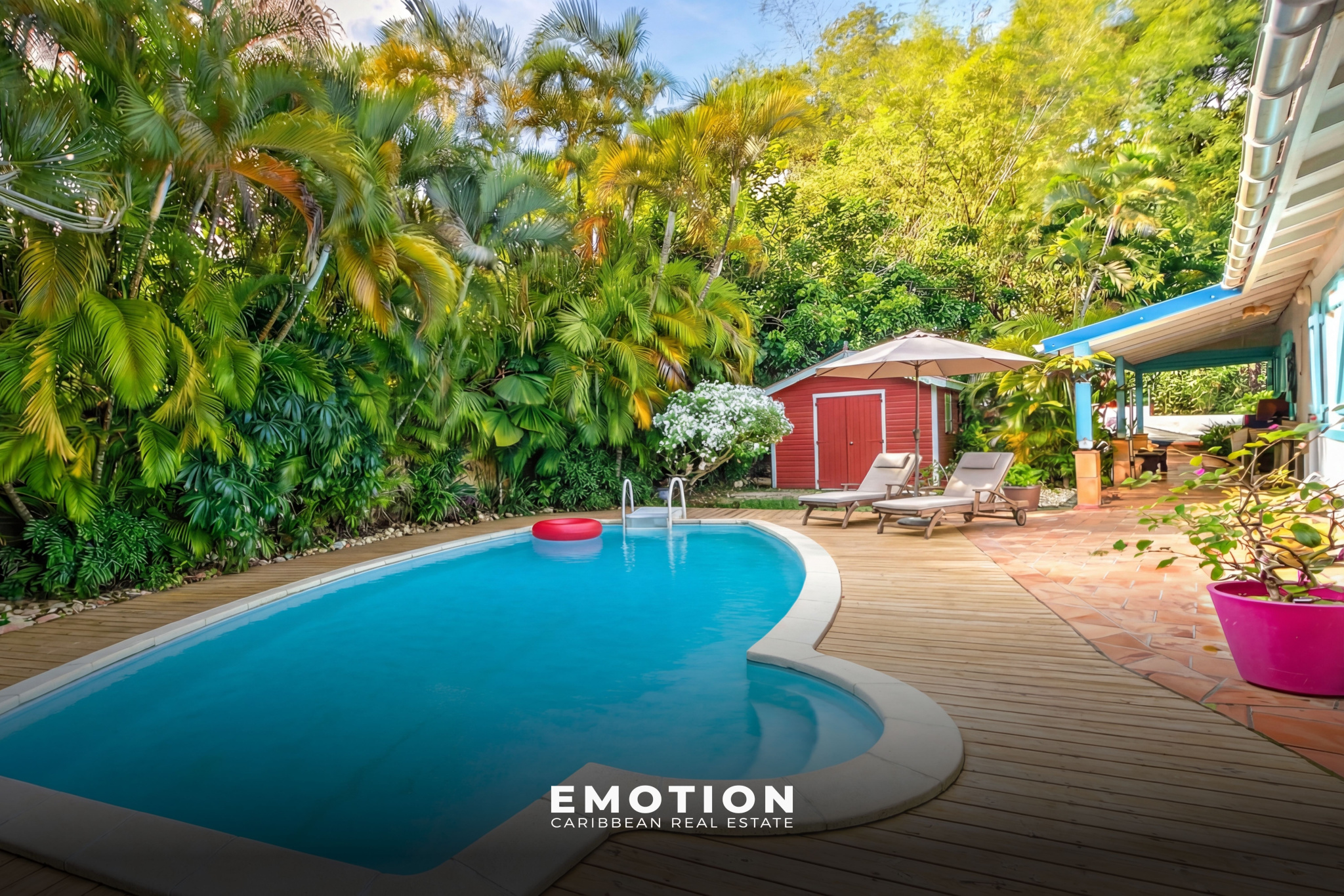 Propriété d'exception au Gosier Quartier Dampierre Villa contemporaine avec piscine et prestations haut de gamme Située dans les hauteurs résidentielles de Dampierre au Gosier, cette propriété d'exception de 360M2 habitable s'étend sur un terrain paysager de 1 265 m2 entièrement clos. L'ensemble a été conçu avec des matériaux de grande qualité, alliant élégance, confort et fonctionnalité. Construite sur deux niveaux, la villa offre une distribution fluide des espaces et une vie intérieure-extérieure parfaitement intégrée. Elle dispose de deux emplacements de parking fermés, d'un accès sécurisé par volets électriques et interphone, et de volumes généreux propices à une vie familiale ou à la réception. Rez-de-jardin : Quatre chambres climatisées avec placards, dont deux avec salle d'eau et WC privatifs Une salle d'eau indépendante avec WC Un bureau, une salle de jeux, une buanderie, un local technique piscine Terrasses et dégagements Escalier intérieur menant à l'étage principal Rez-de-chaussée : Entrée avec dégagement Vaste salon ouvrant sur l'extérieur Cuisine aménagée et équipée avec cellier Une chambre climatisée de 8,5 m2 Une suite parentale avec deux dressings, salle de bain et WC Terrasse couverte, balcon, et terrasse deck donnant sur la piscine Prestations complémentaires : Groupe électrogène Citerne enterrée de 10 000 litres Finitions soignées, matériaux durables et haut de gamme Cette villa allie architecture contemporaine, emplacement recherché et prestations techniques de qualité supérieure, au coeur d'un quartier calme et résidentiel, à proximité des commodités du Gosier. Les informations sur les risques auxquels ce bien est exposé sont disponibles sur le site Géorisques : georisques.gouv.fr.