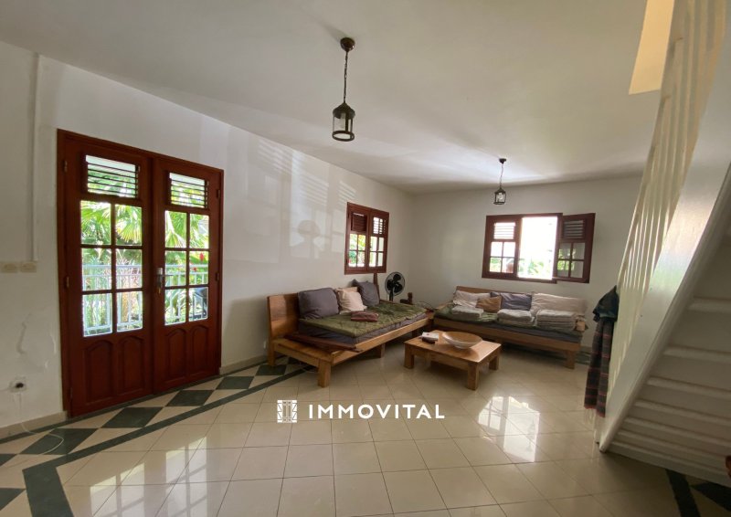 À Vendre Spacieuse Maison Familiale avec Piscine Capesterre-Belle-Eau Découvrez cette charmante maison familiale située dans le paisible secteur de Fond Cacao, à Capesterre-Belle-Eau. Nichée au coeur d'un environnement verdoyant, cette propriété offre de beaux volumes intérieurs et un cadre de vie idéal pour une famille ou pour un projet locatif. Caractéristiques principales : Surface terrain : 1 869 m2, 6 chambres, dont 3 mansardées à l'étage 1 bureau (attennant à une des chambres du rdc) 2 salles d'eau modernes Un vaste salon et une salle à manger Cuisine ouverte sur le salon et la salle à manger Grande terrasse couverte en L, parfaite pour profiter de la vue sur le jardin et sur la piscine Piscine sécurisée, idéale pour les moments de détente Garage avec espace buanderie, offrant la possibilité d'être aménagé en studio indépendant Portail électique Quartier calme Un cadre de vie rare et recherché La maison séduit par son charme créole, ses beaux espaces extérieurs et son ambiance chaleureuse. Les volumes permettent d'accueillir une grande famille, de créer des espaces indépendants ou de développer un projet de location saisonnière. Localisation Située à Capesterre-Belle-Eau, la propriété bénéficie d'un environnement calme tout en restant proche des commodités, écoles, axes routiers et sites naturels appréciés. Prix honoraires inclus : 432 000 euros. Prix hors honoraires : 400 000 euros. Honoraires TTC à la charge de l'acquéreur :32 000 euros. (8% du prix du bien hors honoraires) Ce bien est proposé par IMMOVITAL Basse-Terre, contactez nous au 0590 88 10 10 pour les visites ! Retrouvez vos agences IMMOVITAL à Jarry et Le Moule !