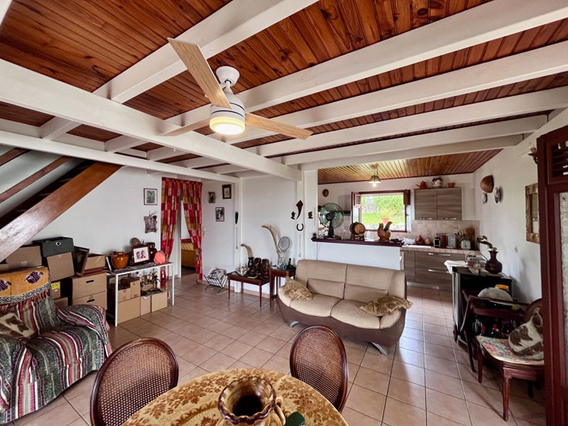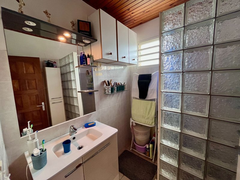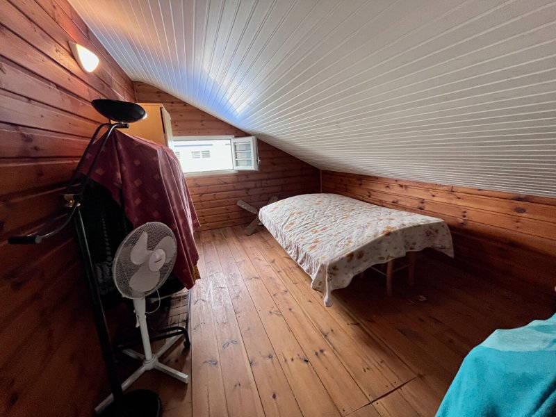Charmante maison sur deux niveaux comprenant au rez-de-chaussée : un séjour, une cuisine ouverte aménagée et équipée, un dégagement, deux chambres dont une climatisée, une salle d'eau, un WC avec lave-mains. A l'étage : un dégagement, une chambre mansardée, grenier aménageable en chambre et SDE.