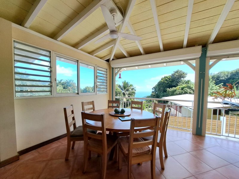 Très belle vue mer et campagne pour cette spacieuse villa Créole de type 6 située sur les hauteurs de Sainte-Luce à seulement 10 minutes des plages et du bourg.
