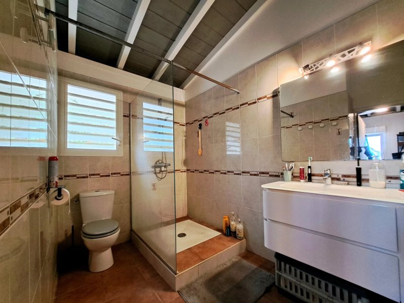 - En rdc ; Une grande varangue ouverte sur un très bel espace de vie (plafond cathédrale) avec salle à manger, salon et cuisine aménagée ouverte, une buanderie, une arrière cuisine, 3 chambres, 3 SDD dont 2 avec toilettes, un toilette séparé.