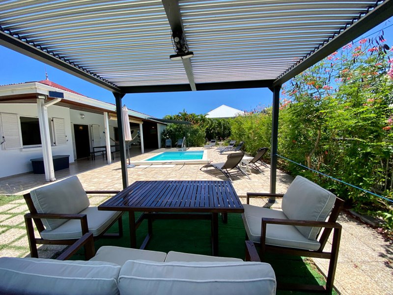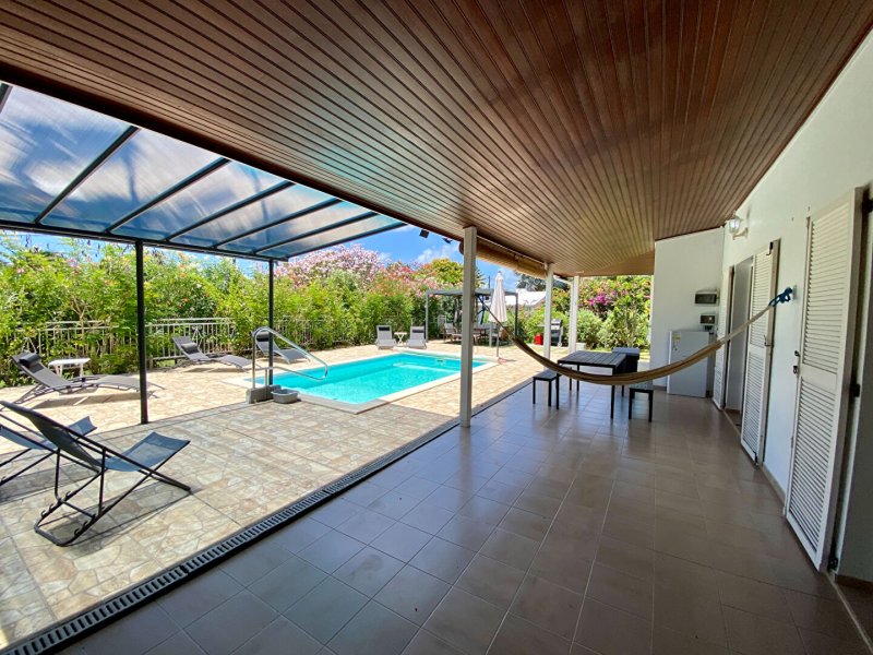 À l'extérieur, vous serez séduits par les aménagements pensés pour la détente et la convivialité : une piscine, un carbet, un terrain de pétanque, ainsi qu'un espace de stationnement couvert pouvant accueillir jusqu'à quatre véhicules.