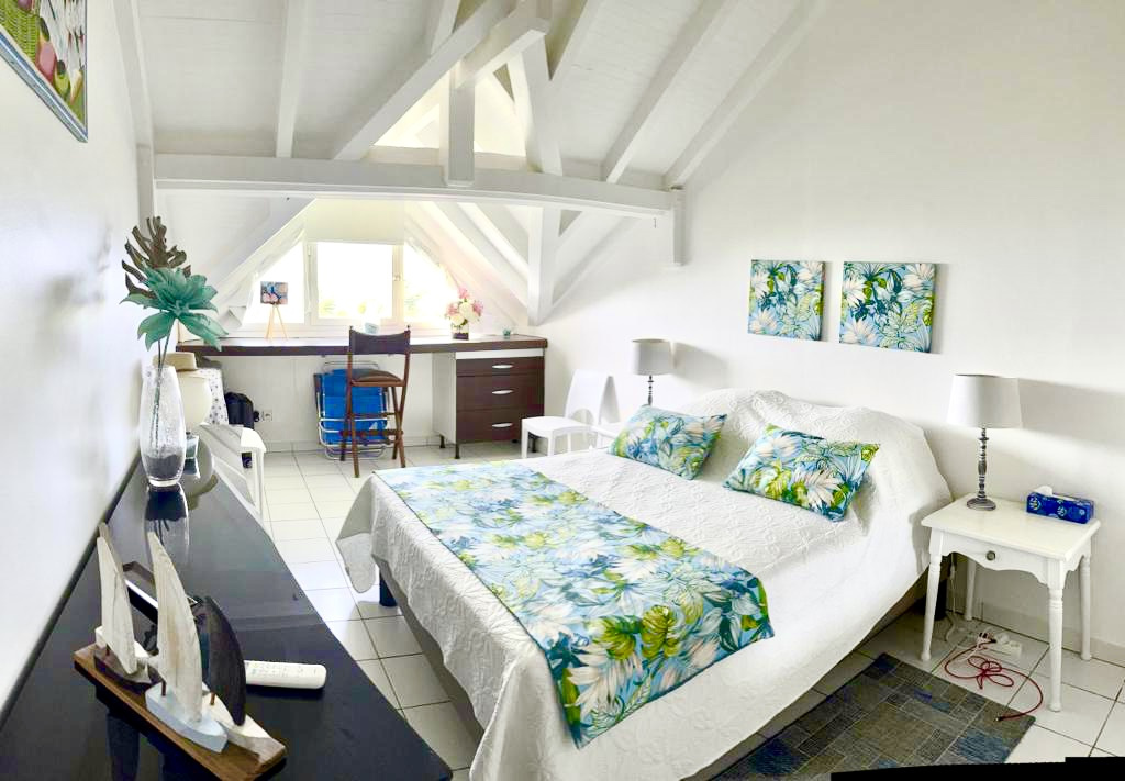 ANSE DES ROCHERS VUE MER : 1/4 de villa étage de 34 m2 (terrasse comprise) meublé, avec accès plage, piscine...