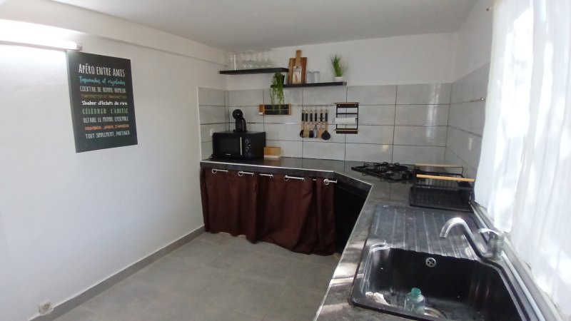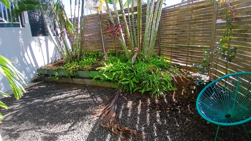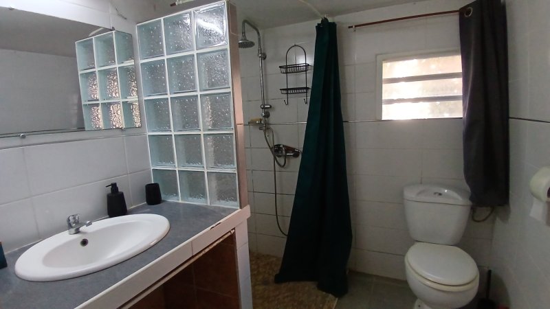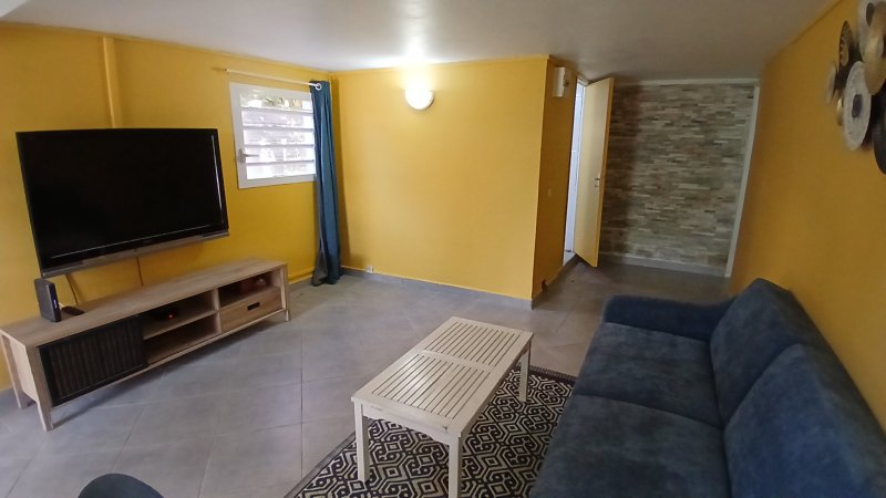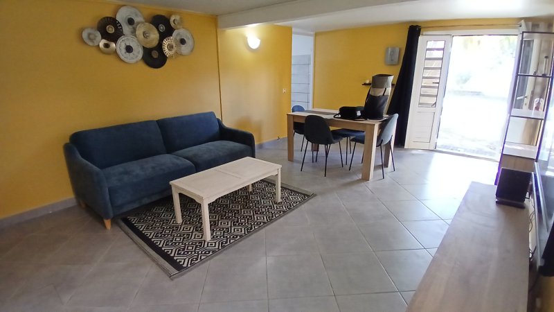 SAINTE ROSE 'Viard': Ce rez de jardin 'Meublé' comprend un séjour, une cuisine, une salle d'eau avec toilettes, une grande chambre climatisée. Petit jardinet et place de parking. Loyer 570EUR+30EUR de charge comprenant l'eau.