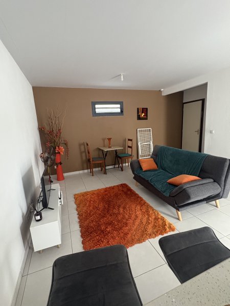 Dans un ensemble immobilier en monopropriété, sur un terrain entièrement clôturé et sécurisé par un portail électrique, découvrez cet agréable appartement T2 meublé, situé de plain-pied. Le logement se compose d'un séjour, d'une cuisine équipée (plaque de cuisson, four, hotte), d'un WC indépendant, d'une chambre climatisée avec rangements ainsi que d'une salle d'eau attenante. Le bien est proposé entièrement meublé et bénéficie d'un environnement calme, avec un accès facilité et un stationnement possible à l'intérieur de la propriété. Idéal pour une personne seule ou un couple. LOYER MENSUEL : 900? DONT 67,50? DE CHARGES DG 900? Honoraires : 560,56? dont 129,36? pour l'EDL. Pour plus d'informations ou pour organiser une visite, merci de nous contacter. Steven 0694 42 52 49 ou jsconseils@js-conseil-immo.fr - FN_1770182494