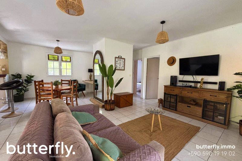 Maison meublée F4 de 2004 à Baie-Mahault (Zone de Dorville) sur un terrain clos et arboré de 550m2 Salon séjour, cuisine équipée, 1 chambre climatisée avec salle de douche + 1 autre chambre climatisée avec salle de bain Grande terrasse couverte - place de parking dans l'enceinte du terrain - Portail motorisé Le loyer + charges comprend : taxe d'enlèvement des ordures ménagères - l'eau, electricité et internet seront à la charge du locataire DPE 10kWHEF - Classe A ----------------------- Contact commercial : LILA KEBBI 06.59.47.37.34 Whatsapp 0659473734 -----------------------