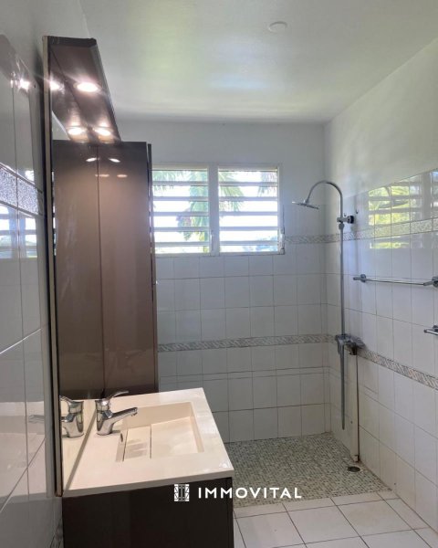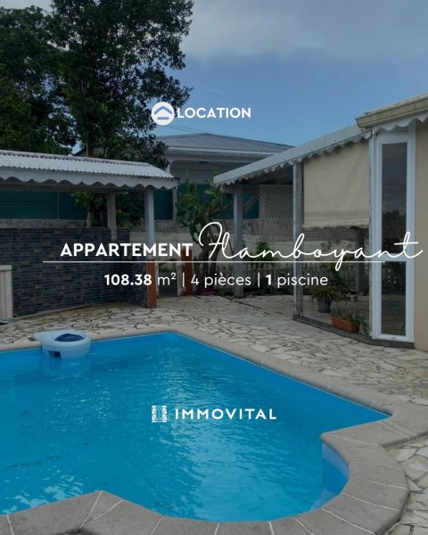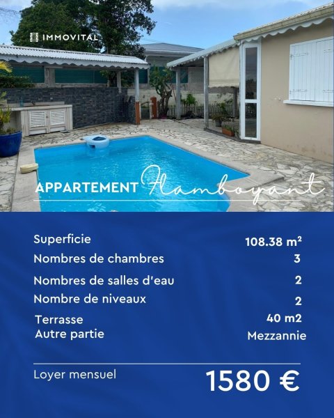 Votre agence IMMOVITAL JARRY a le plaisir de vous proposer à la location, ce rez-de-villa de type T4 avec mezzanine d'une surface habitable de 108,38 m2 avec une terrasse d'environ 40 m2. Le bien comprend : une cuisine, un séjour spacieux et lumineux, trois chambres climatisées dont une suite parentale avec salle d'eau, une salle d'eau, un WC indépendant, et une grande mezzanine. À l'extérieur, vous disposez d'une picisine privative et de places de parking. Pour toute demande de précision et/ou de visite, n'hésitez pas à contacter votre agence IMMOVITAL JARRY au 05 90 48 10 10. Retrouvez également vos agences IMMOVITAL LE MOULE au 05 90 23 10 10 et BASSE-TERRE au 05 90 88 10 10.
